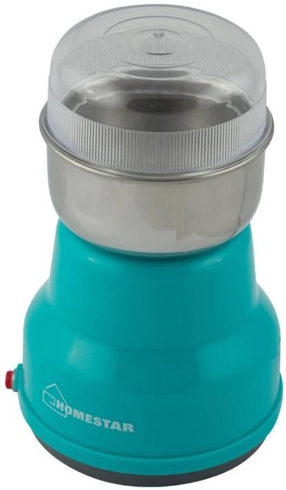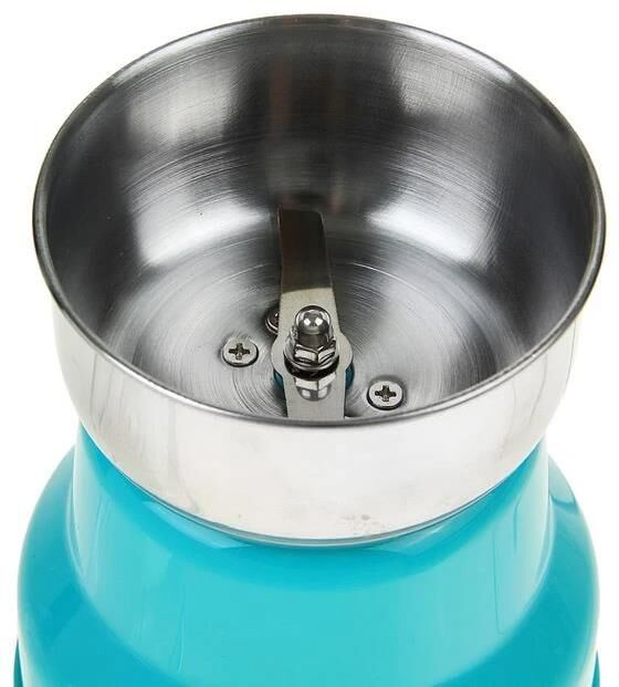 Емкость 50 г кофе в зернах. Чаша и ножи из нержавеющей стали. Импульсный режим работы. Прорезиненные ножки. Прозрачная крышка. Мощность 150 вт. Цвет бирюзовый.