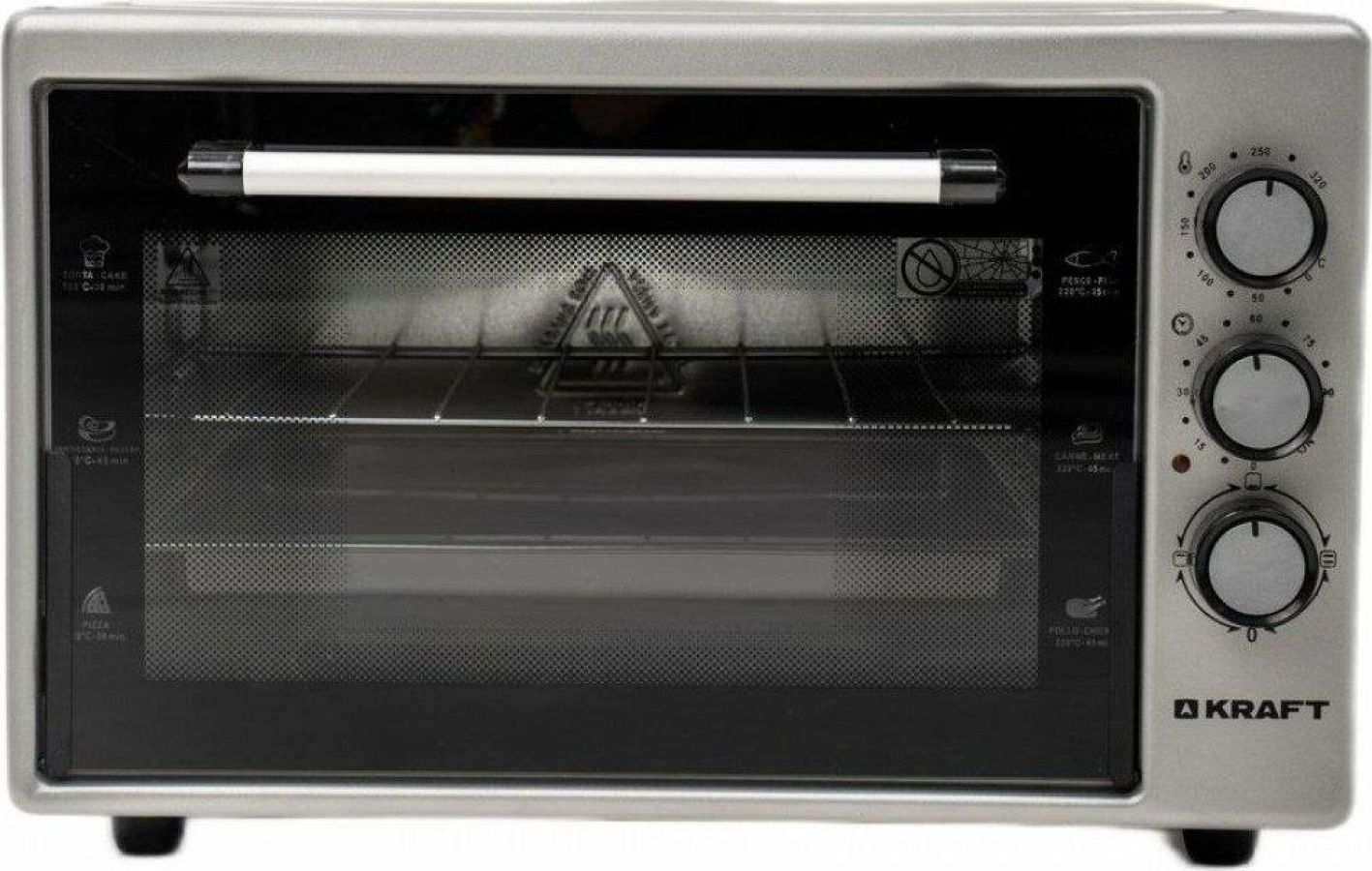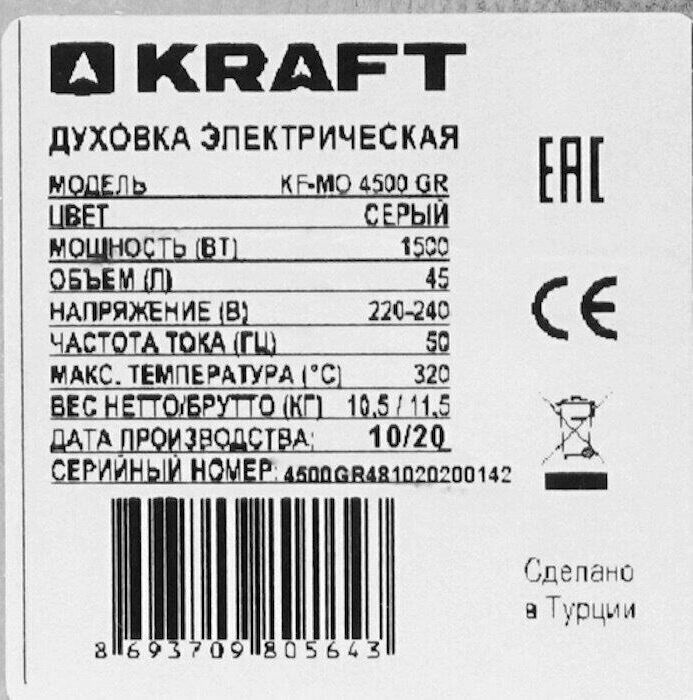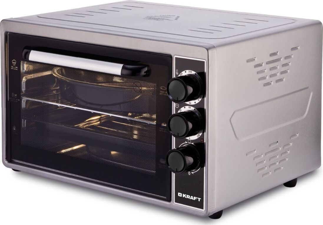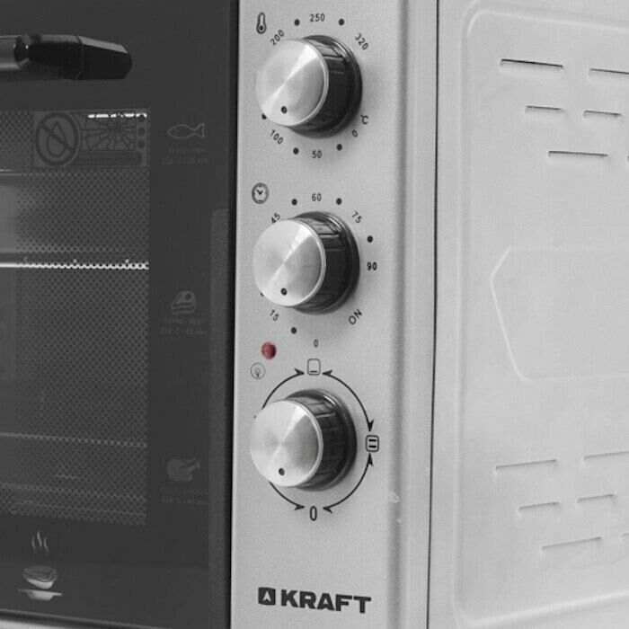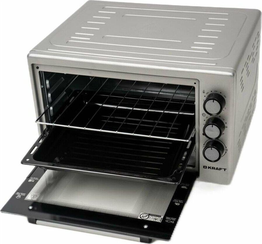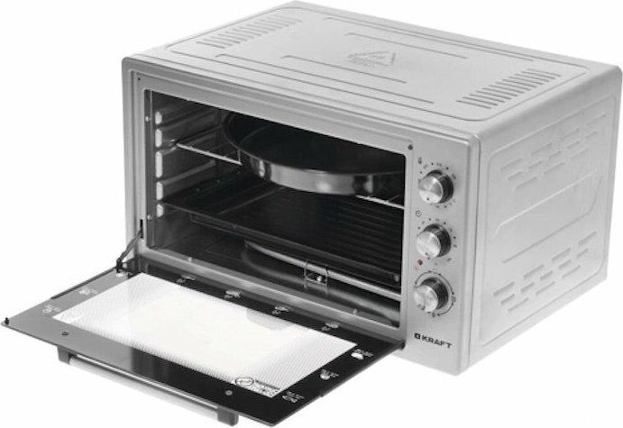 Габариты без упаковки (ШхГхВ) 580x430x330. Вес 10,5 кг. Объем (л) 45. Таймер отключения (мин) 90. Количество режимов работы 6. Максимальная температура (°С) 320. Решетка. Противень для выпечки прямоугольный. Противень Круглый. Термостат. Внутренняя подсветка. Длина шнура (м) 1.2