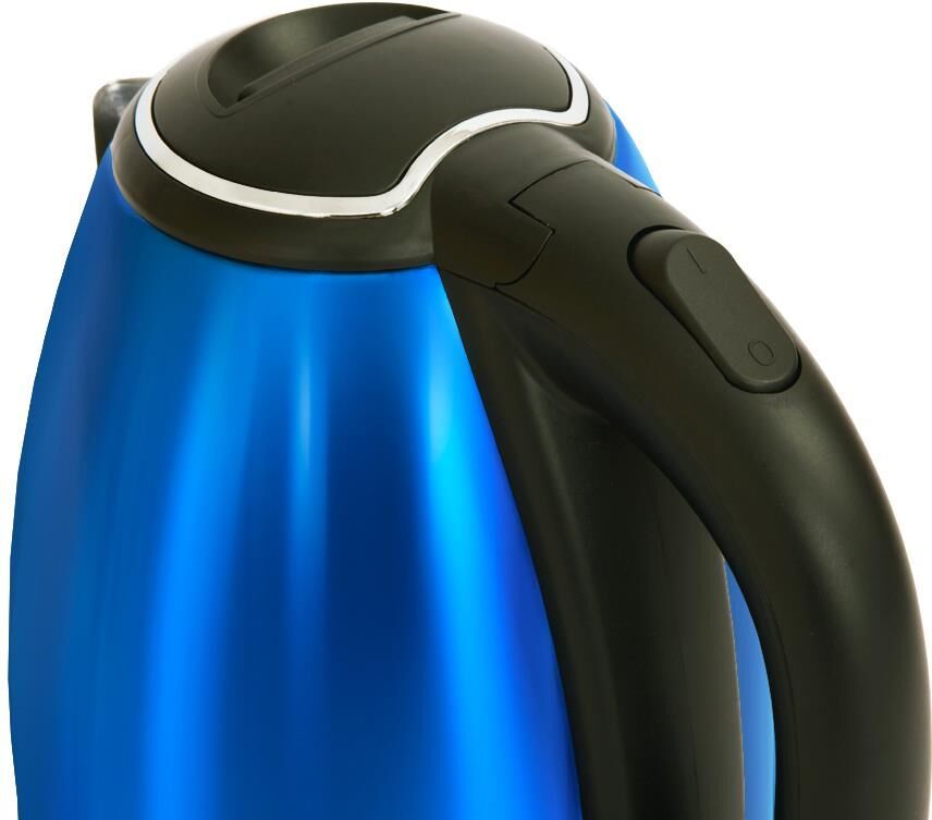 Максимальный объем, л. 1,8. Подставка с вращением на 360 есть. Хранение сетевого шнура в подставке есть. Отключение при закипании есть. Отключение при отсутствии воды есть. Индикатор включения есть. Комплектация чайник, гарантийный талон, инструкция на русском языке. Материал корпуса нержавеющая сталь. Цвет синий. Потребляемая мощность, Вт. 1500. Электропитание, В., Гц. 220-240, 50.