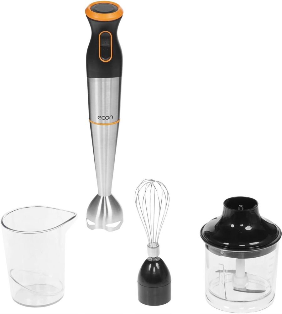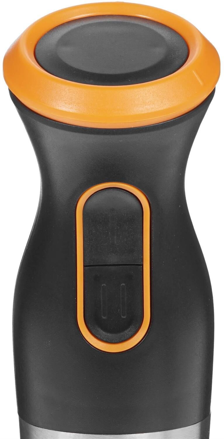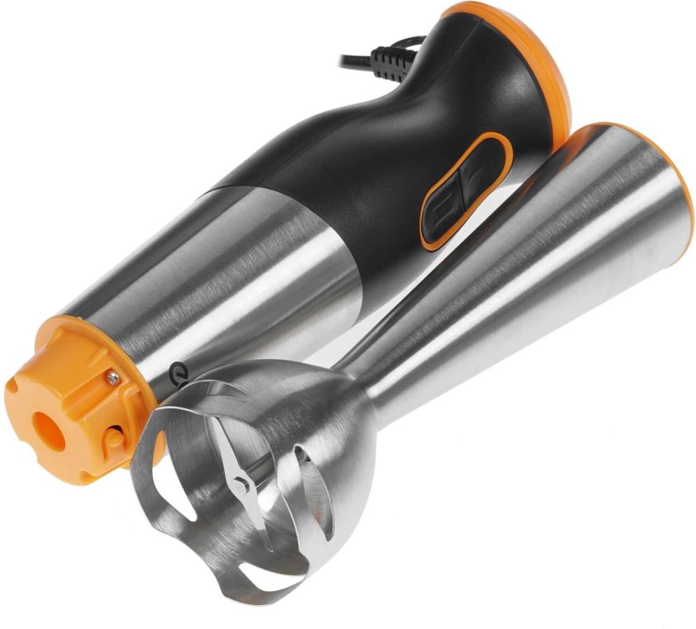 Блендер погружной, максимальная мощность 1000 Вт, импульсный режим работы, 2 скорости, насадка-блендер из нержавеющей стали, съемная насадка-венчик из нержавеющей стали, мини-измельчитель 500 мл, мерный стакан 500 мл, цвет черный со стальным