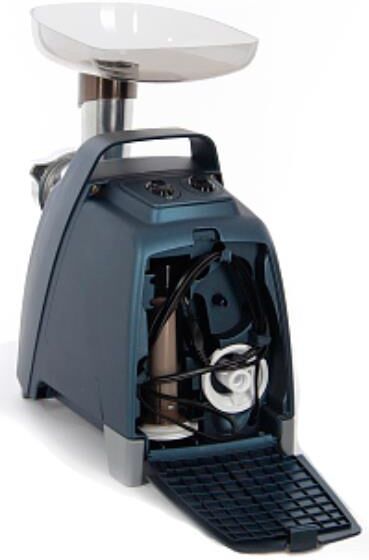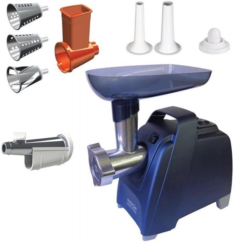 Габаритные размеры (ШxВxГ) 0,4 х 0,3 х 0,3 м Номинальная потребляемая мощность 300 Вт Панель управления Механическая Длина провода 1,5 м Производительность 4 кг/мин Мощность 2000 Вт Двойная защита от перегрузки; Функция «реверс» для предотвращения наматывания жилок на шнек; Отсек в корпусе для шнура питания, хранения ножа и насадок; Особая заточка ножа и решетки увеличенной толщины из нержавеющей стали, обеспечивающие высокое качество фарша из всех видов мяса и других продуктов; До 30 минут непрерывной работы; 2 вида решеток для получения фарша разной консистенции - с диаметром отверстий 4,9 мм и 8,5 мм; Новая конусообразная конструкция шинковки для овощей; Высокое размещение шнековой камеры; Эргономичная гайка для удобной сборки/разборки мясорубки; Широкая ручка для переноски; Устойчивые нескользящие ножки для фиксации мясорубки на поверхности стола; Цвет темно-синий