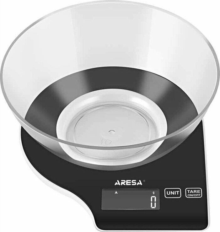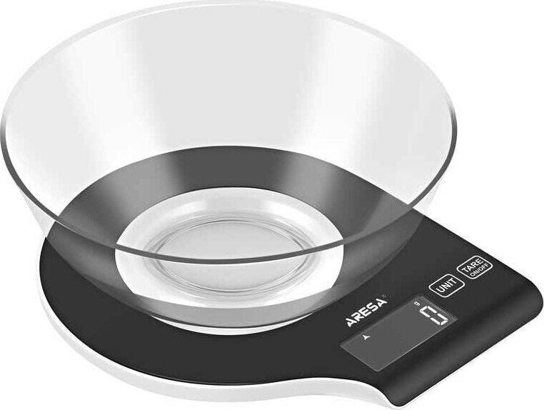 Максимальная нагрузка 5 кг, Минимальная нагрузка 5 г, Точность 1 г, Съемная чаша, Жидкокристаллический дисплей, Предупреждение о превышении максимального веса, Предупреждение о низком заряде батареи, Функция сброса тары, Питание: 2 х 1,5V AAA.