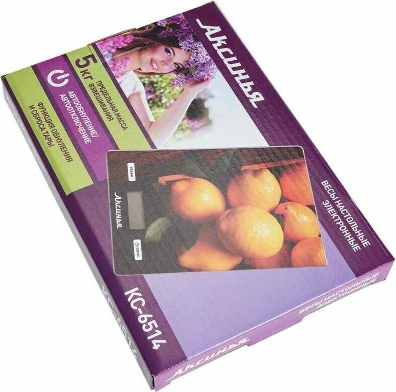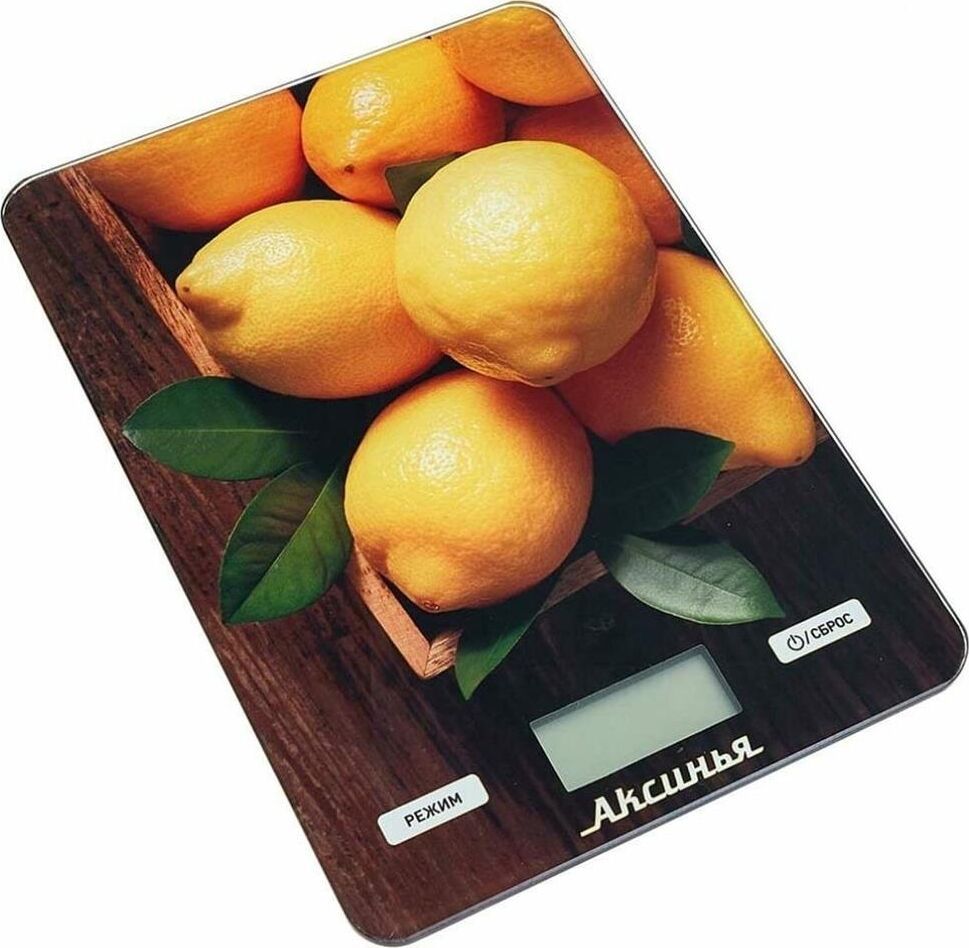 АКСИНЬЯ КС-6514 " Лимоны ": 5кг, стекло Параметры Предельная масса взвешивания 5 кг Точность взвешивания ± 1 г Размер весов 21,5х15х2см Описание Платформа из упрочненного стекла LCD дисплей Индикатор уровня заряда батареи и перегрузки весов Петелька для подвешивания Противоскользящие ножки Функция измерения объема жидкости: молоко, вода Функция сброса веса тары и обнуления позволяет последовательно взвешивать ингредиенты блюда, не учитывая массу посуды Выбор единицы измерения Автообнуление/автоотключение Электропитание: 1 литиевая батарейка на 3 В (в комплекте) Производитель: Россия