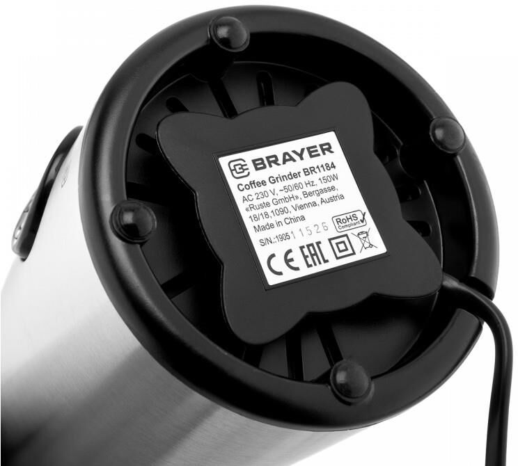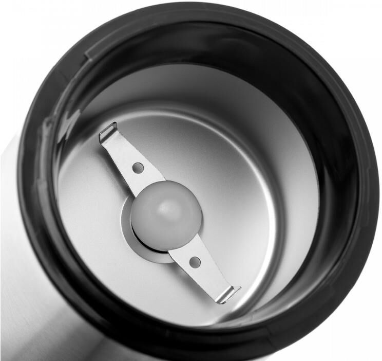 Мощность 150 Вт Ёмкость контейнера для зёрен 50 г Импульсный режим работы Нож из нержавеющей стали Чаша из нержавеющей стали Работа только при закрытой крышке Место для хранения шнура Электропитание 220-240 В, ~50-60 Гц EAN: 9120099330138