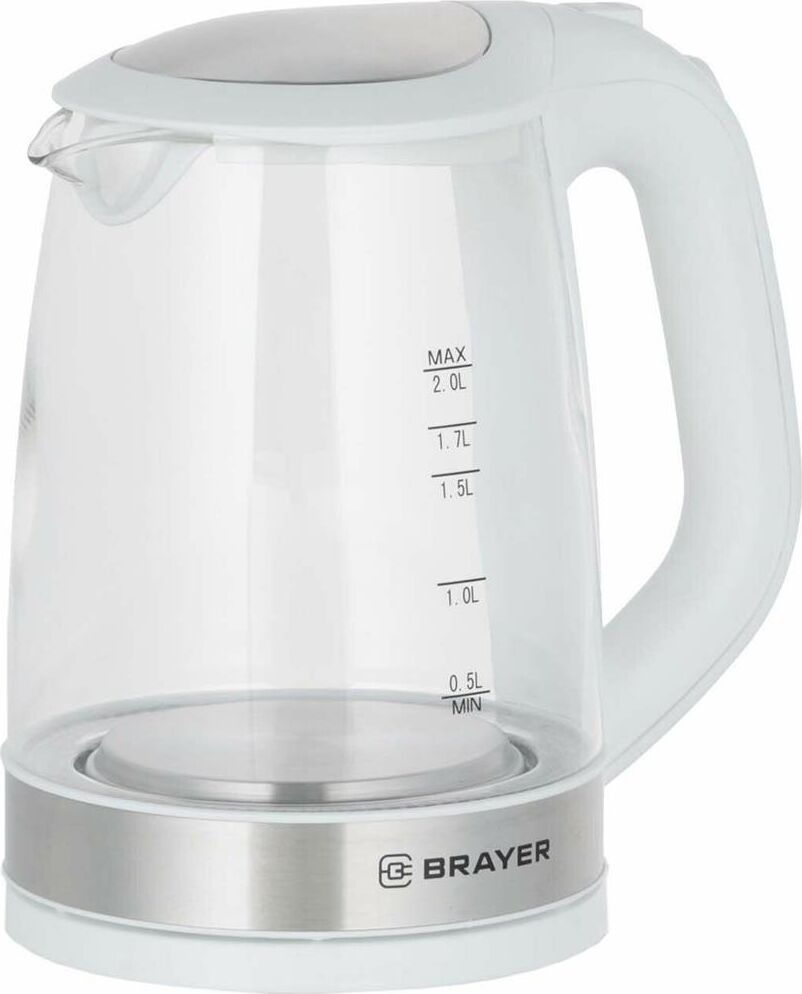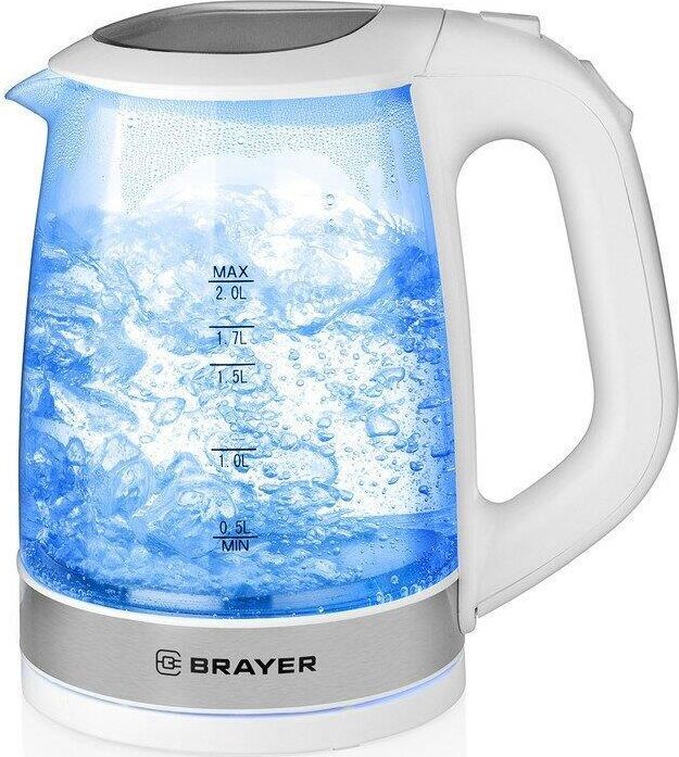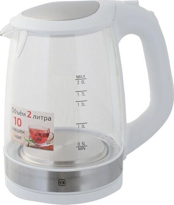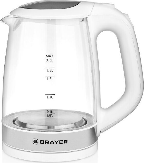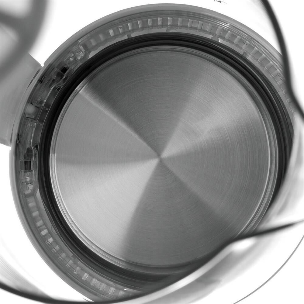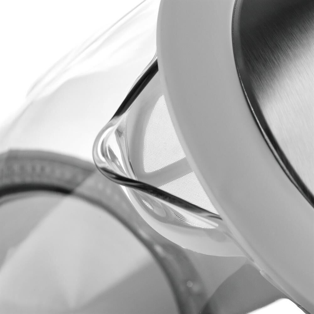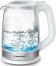 Максимальная мощность 2200 Вт Максимальный объём 2 л Корпус из высокопрочного термостойкого стекла Внутренняя подсветка Автоотключение при закипании воды Отключение при отсутствии воды Моющийся фильтр Противоскользящее основание Электропитание 220-240 В, ~50-60 Гц
