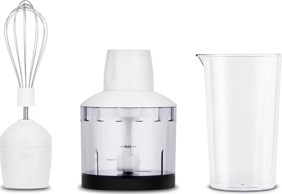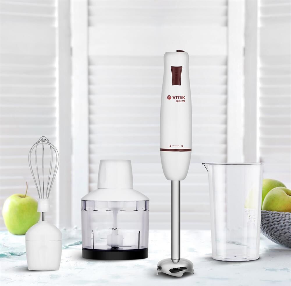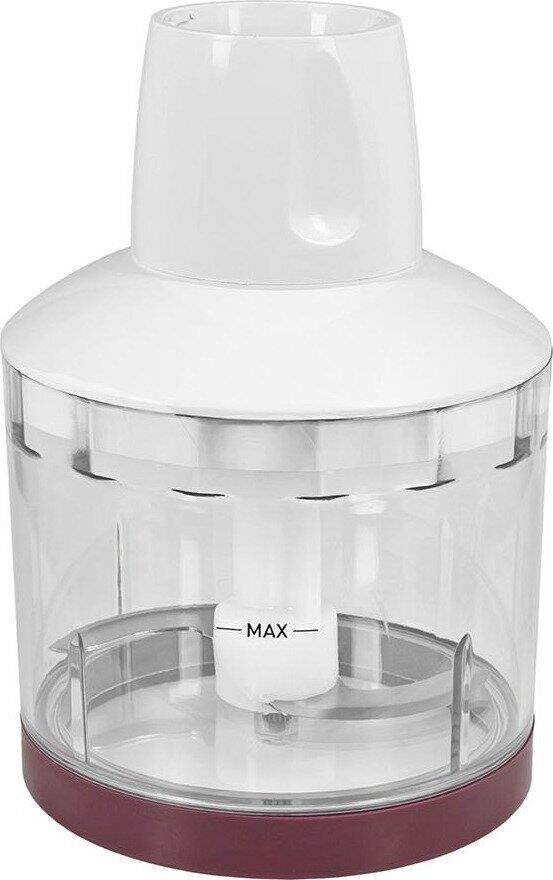 Блендер погружной. Мощность: 800 вт, Количество скоростей: 20, Плавная регулировка скорости, Управление: механическое, Материал корпуса: пластик, Материал погружной части: нержавеющая сталь, Емкость измельчителя: 500 мл, Емкость мерного стакана: 600 мл, Колка льда, Венчик для взбивания, Мерный стакан, Длина сетевого шнура: 120см, Измельчитель, Цвет: Белый/бордовый
