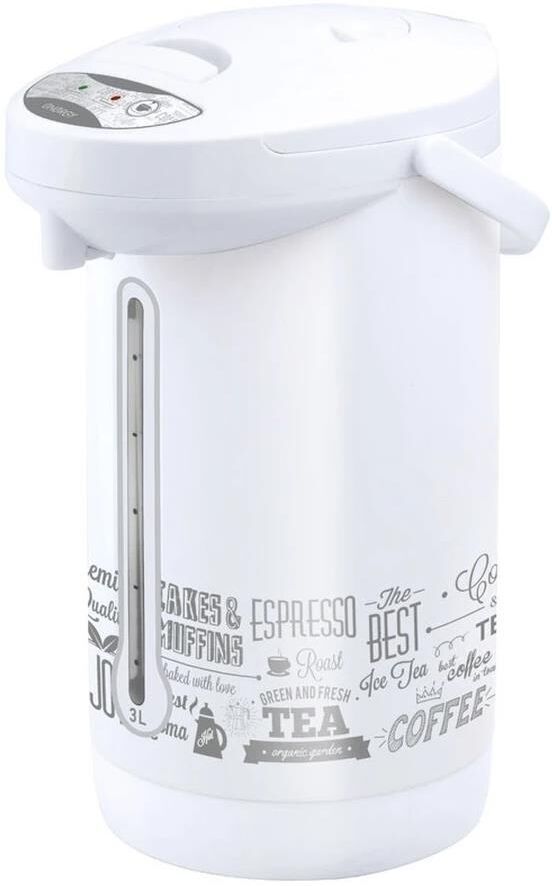Мощность: 750 Вт Объем: 3 л Мощность в режиме поддержания температуры: 35 Вт 3 способа подачи воды: автоматическая (нажатием кнопки, нажатием чашкой) и ручная (помпа) Функция поддержания температуры Быстрое кипячение воды Энергосберегающий принцип работы Скрытый нагревательный элемент Нержавеющая стальная колба Съемный шнур питания Индикатор уровня воды Состав (материал): металл, пластик, кабель