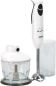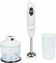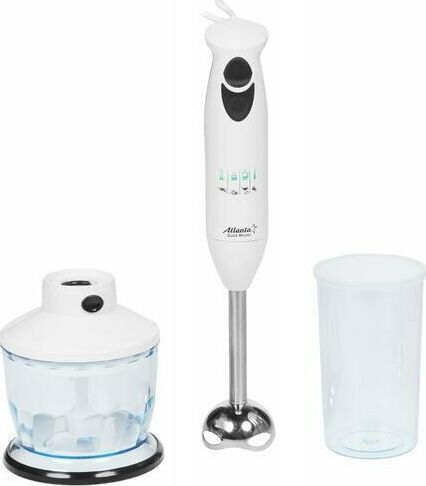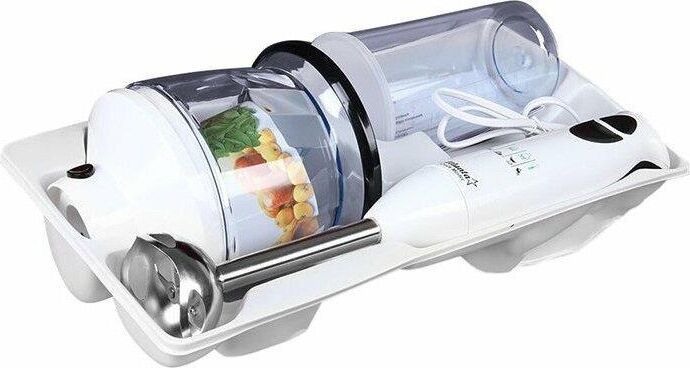 Удобная анатомическая форма ручки Две скорости работы Насадка блендера изготовлена из высокопрочной пищевой стали Чаша – измельчитель удобна в использовании и подходит для небольших объемов Емкость объемом 1 литр с крышкой идеальна для приготовления жидкого теста, коктейлей и пюре Обороты до 11000 в минуту Номинальная мощность 280 Вт 230 B ~ 50 Гц