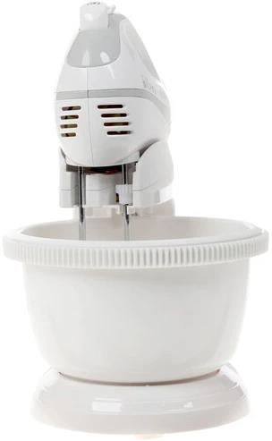 Мощность 320 Вт. Кол-во скоростей 5. Режим «Турбо». Объем чаши 3,5 л. Засечки на чаше. Пара насадок для взбивания. Пара насадок для замешивания. Автоматически вращающаяся чаша. Цилиндрическое сечение венчиков. Откидная конструкция. Переключатель скоростей. Кнопка освобождения насадок. Длина шнура 1,2 м.