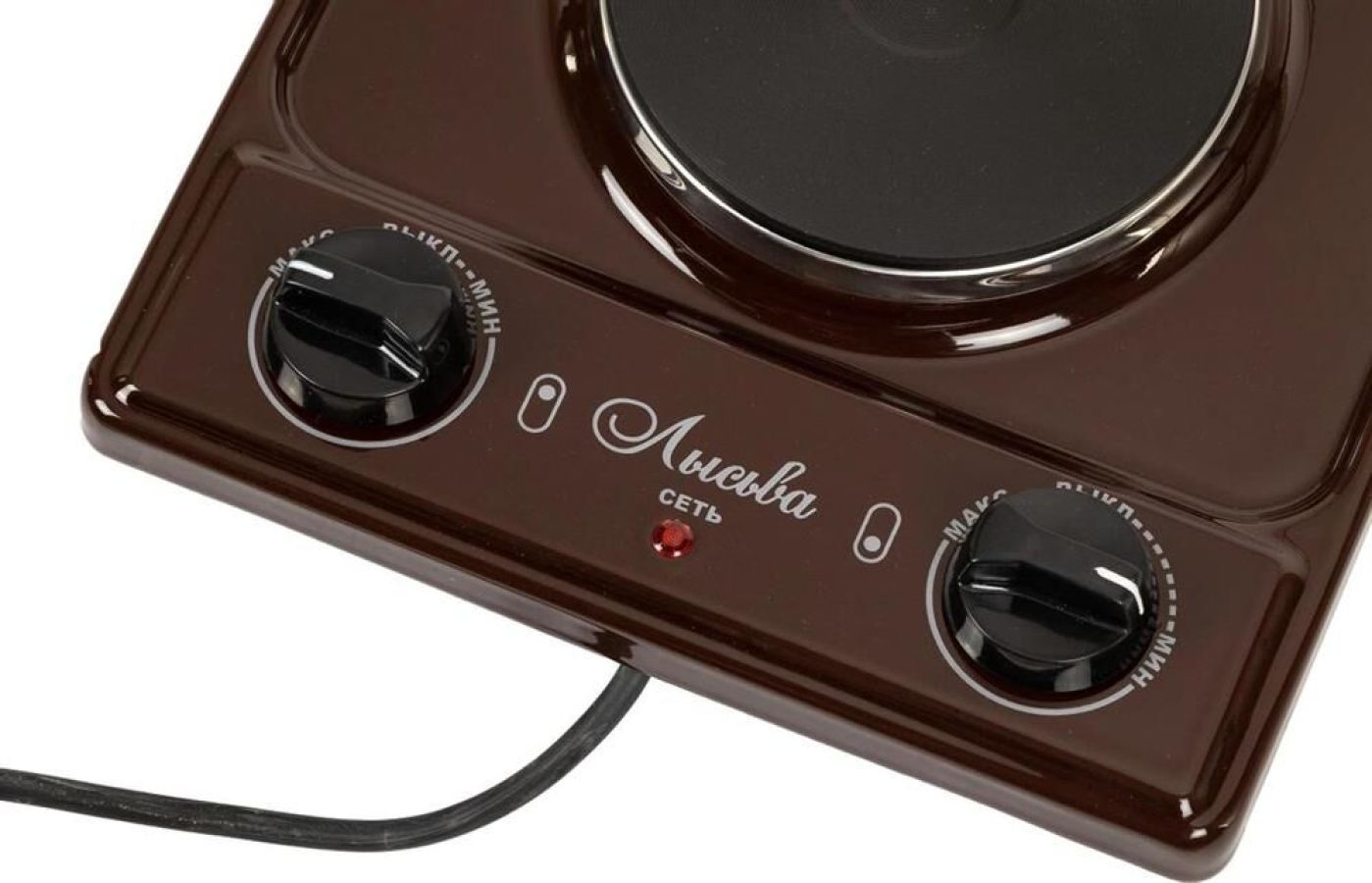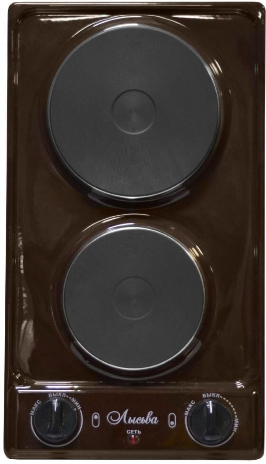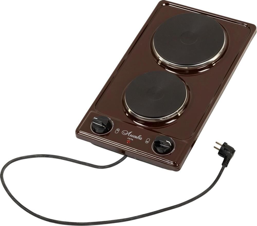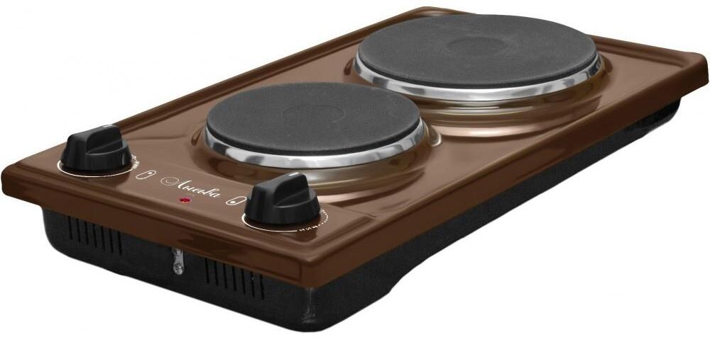 (ШхГхВ) 29х51х10 см.Цвет коричневый.Установленная мощность: 2.2 кВт Масса нетто: 6 кг Количество конфорок: 2 Мощность передней конфорки: 0.7 кВт (145 мм) Мощность задней конфорки: 1.5 кВт (180 мм) Бесступенчатая регулировка мощности.