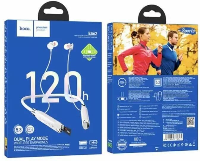 Наушники Bluetooth Hoco ES62 Sound tide sports четко передают все тона музыкальных композиций. Идеально подходят для использования на улице, в транспорте или во время тренировок. Качественную беспроводную связь обеспечивает Bluetooth 5.0. Форма наушников подходит под форму ушной раковины, фиксируются прочно и глубоко в ушном канале, таким образом обеспечивают прекрасную шумоизоляцию. Корпус выполнен из качественного пластика. Модель имеет аккумулятор емкостью 200 мАч для комфортной и длительной эксплуатации, использование в режиме разговора/музыки возможно до 15 часов. Время в режиме ожидания около 200 часов. Чтобы полностью зарядить понадобится около 2 часов. На нем расположены кнопки управления и встроенный микрофон. Благодаря чему вы можете управлять воспроизведением музыки, входящими звонками и отключением телефона.