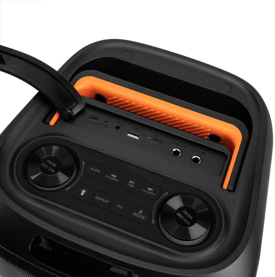 Акустика, Bluetooth - FM - Внешний накопитель - Aux Мощность: - RMS 90 Ватт - PMPO 900 Ватт Питание: - 220V - Встроенный аккумулятор 7.4В 4.5А (до 5 часов работы) Разъемы: - USB - MicroSD - AUX - Jack 6.3 мм (микрофон-гитара) 2 шт. Комплектация: - Колонка - Блок питания - Беспроводной микрофон-1 шт - Пульт ДУ - Инструкция Размеры упаковки: Ширина - 31 см Высота - 66 см Глубина - 30 см Вес-8.3 кг.