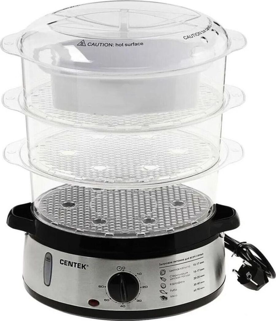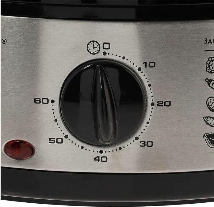 Мощность 800 Вт. Общий объем 9 л. Стальной корпус. 3 чаши для приготовления. Быстрое парообразование. Все пластиковые элементы не содержат BPA. Механический тип управления. Чаша рисоварка. Таймер 60 мин. Индикатор работы.