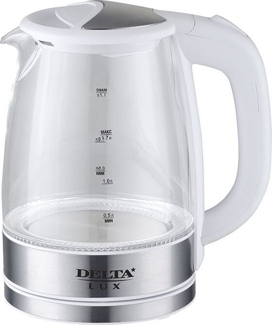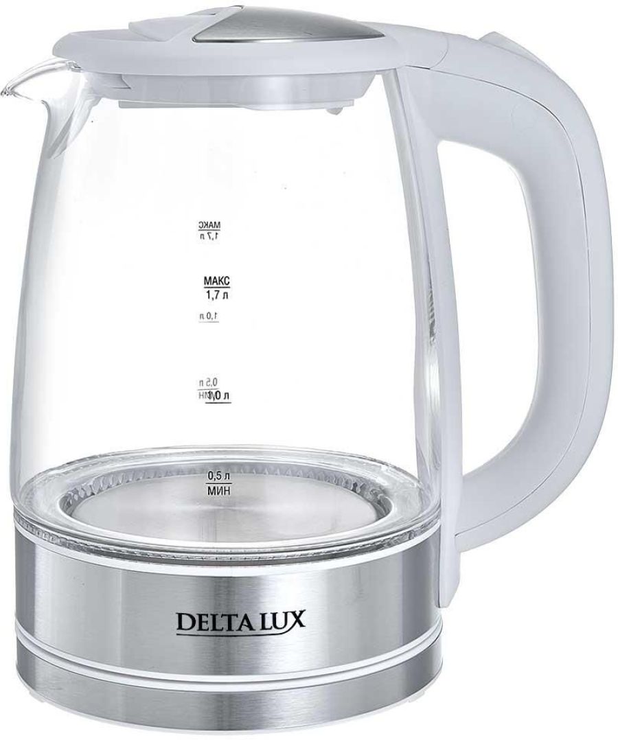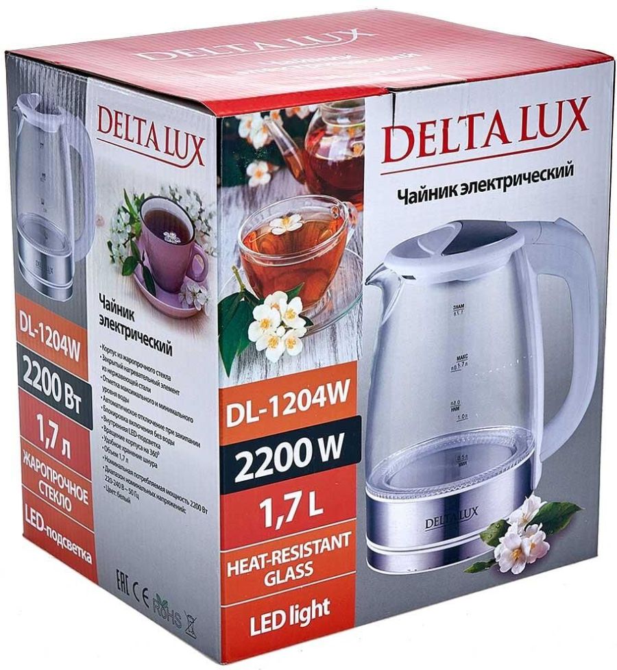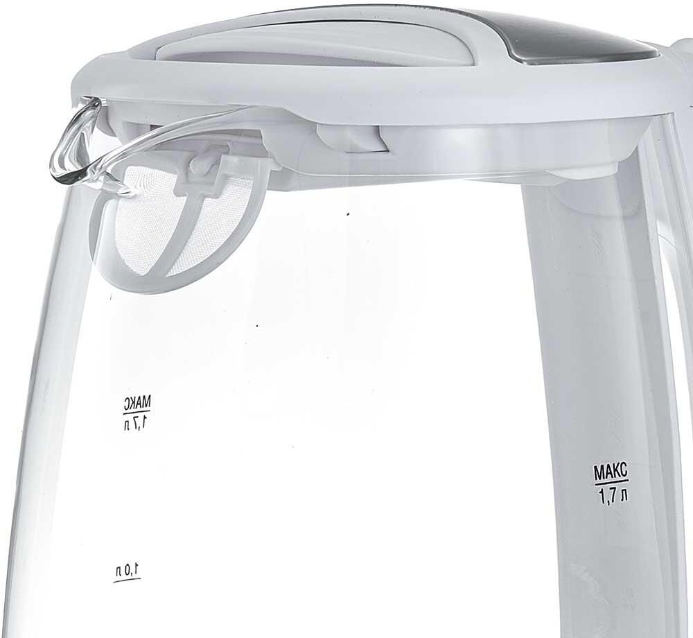 Объем 1,7 л Номинальная мощность 2200 Вт Описание Закрытый нагревательный элемент из нержавеющей стали Корпус из жаропрочного стекла Вращение корпуса на 360° Шкала уровня воды Внутренняя LED-подсветка Съемный фильтр Удобное хранение шнура Цвет: белый Многоуровневая защита: автоматическое отключение при закипании отключение при снятии чайника с базы отключение при недостаточном количестве воды