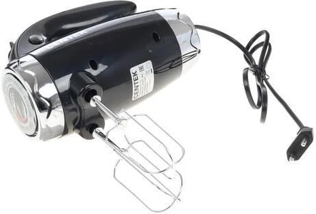 Мощность 350 Вт. Кол-во скоростей 6. Режим «Турбо». Пара насадок для взбивания. Пара насадок для замешивания. Цилиндрическое сечение венчиков. Кнопка освобождения насадок. Переключатель скоростей. Длина шнура 1.15 м.