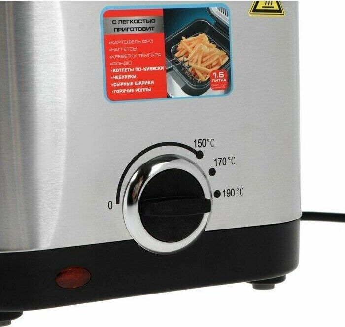 Мощность 900 Вт Объем 1.5 л Кол-во режимов 3 Жарочная корзина 0.5 л Управление Механическое Антипригарное покрытие Тефлон Быстрый нагрев 150-190 °C Особенности LED-индикаторы работы, Защита от перегрева, Съемная крышка со смотровым окном, Фильтр против запаха