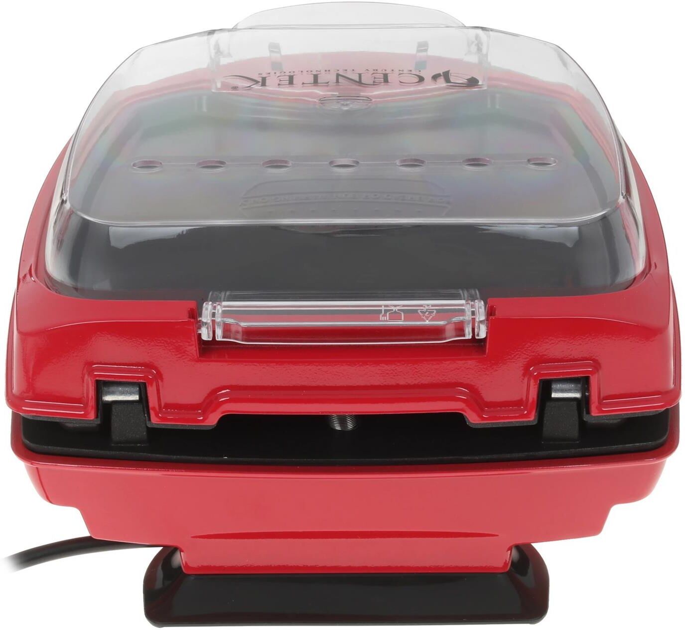 Контактный гриль Centek CT-1465 мощностью 2200 Вт предназначен для жарки сочных мясных, овощных или рыбных блюд на гриле. Закрытый нагревательный элемент расположен в верхней и нижней половинах прибора. Верхняя крышка регулируется под высоту продукта. Открытие пластин на 180 градусов. Антипригарное покрытие рабочих панелей и поддон для сбора масла не дает продуктам пригореть и упрощает мытье после готовки. Размеры жаровни – 294 x 242 мм. Отделка корпуса выполнена из высококачественной нержавеющей стали. Ручка в процессе готовки не нагревается. Нескользящие и устойчивые ножки для комфортного и безопасного использования.