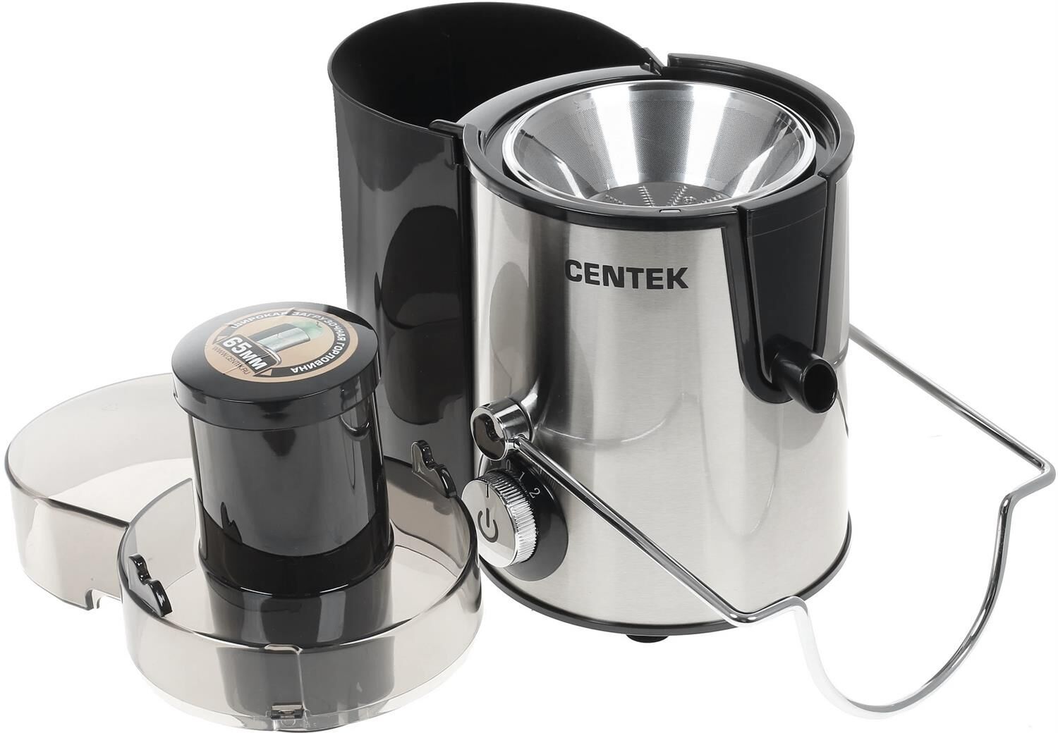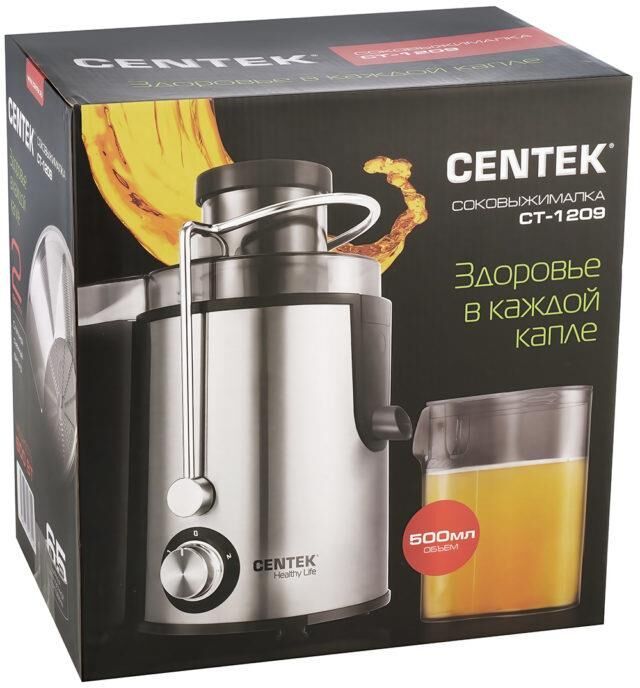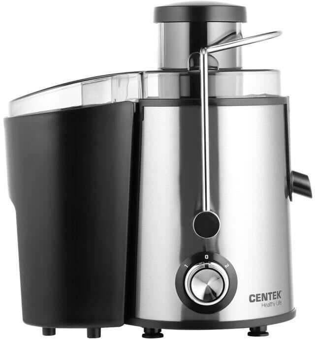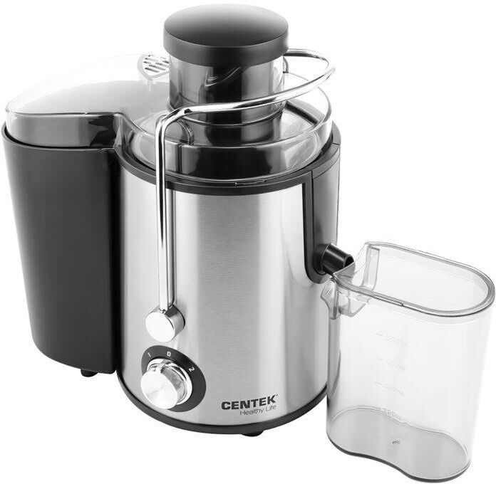 Соковыжималка Centek CT-1209 черный (черный, сталь) 600Вт, 2 скор. + Pulse, стакан 1л, горловина 65мм