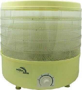 РОТОР ДИВА 5 прозрачными решетками (СШ-007) (цветная упаковка). Мощность 520Вт. Max t воздуха на нижнем поддоне,°С: 70. Объем сушильной камеры 20л. Габариты: 40х39см. Масса 5кг.