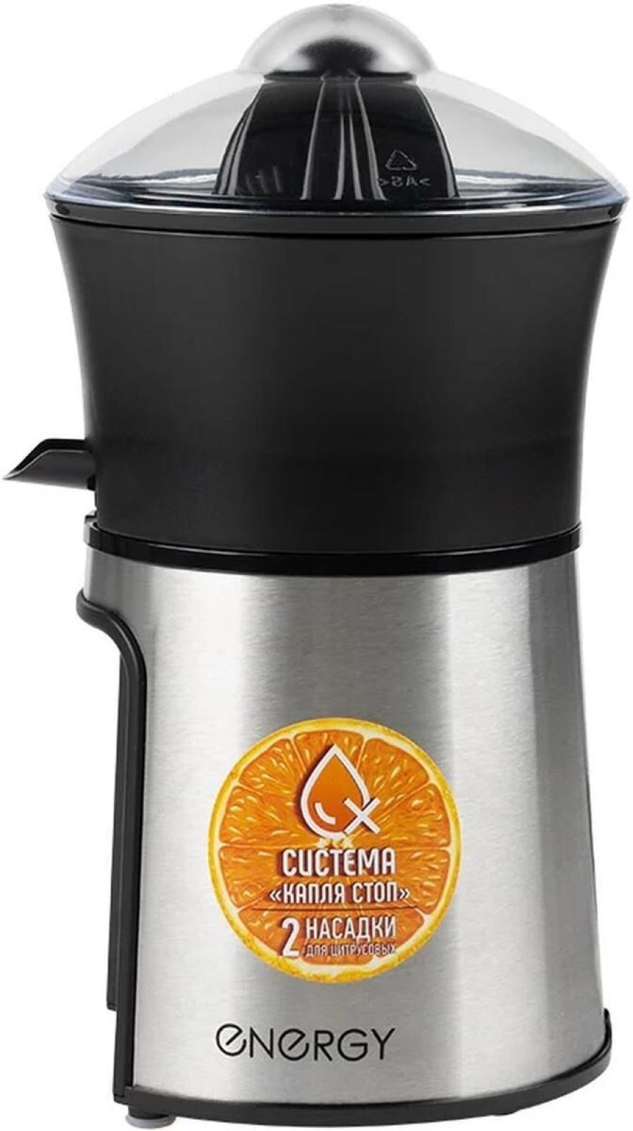 Система "Капля СТОП" 2 конуса-насадки для цитрусовых разной величины Автоматический запуск при нажатии на конус Тихий двигатель Прорезитенные ножки Длинна шнура - 110 см Защитная крышка от пыли Съёмные детали для удобства очистки Мощность 80 Вт