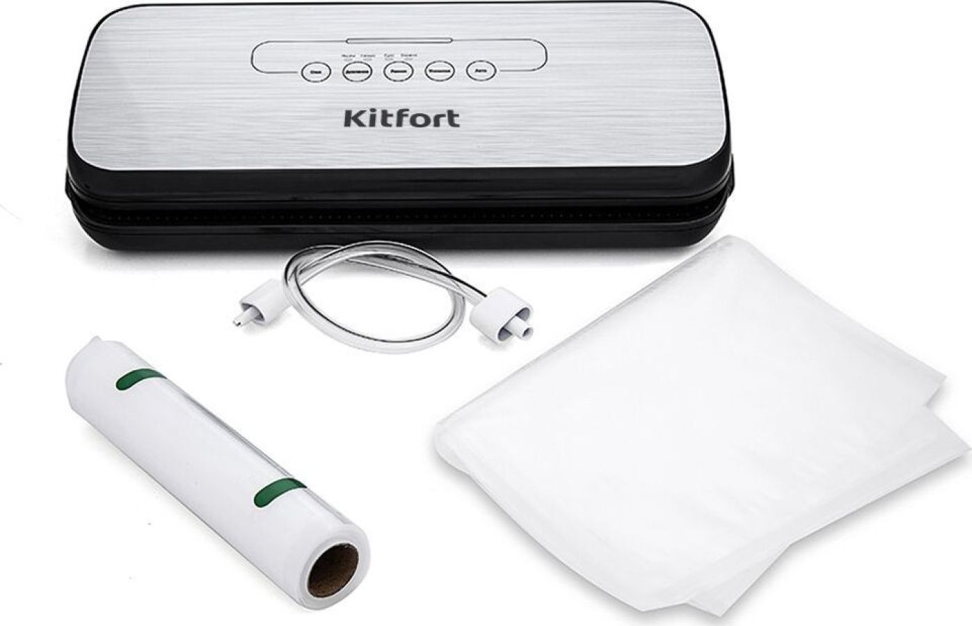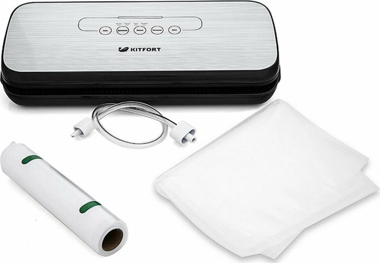 Мощность 110 Вт. Особенности в комплекте: Вакуумные пакеты 20 х 30 см - 5 шт; Рулон вакуумной пленки 20 х 200 см - 1 шт. Электропитание от бытовой сети. Материал корпуса пластик.
