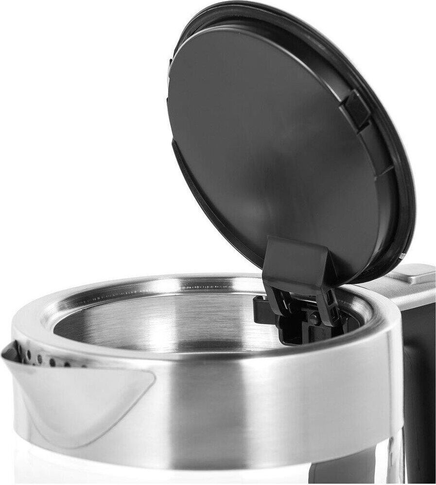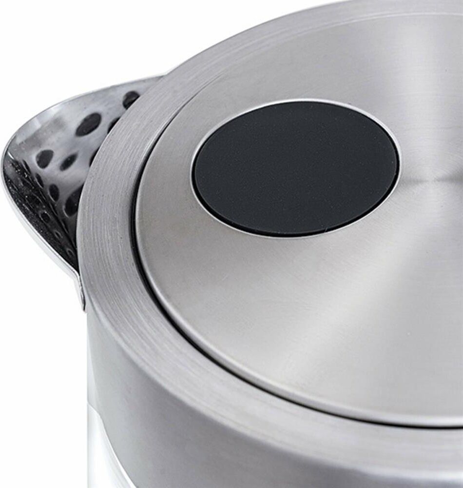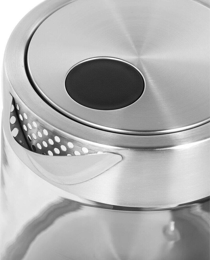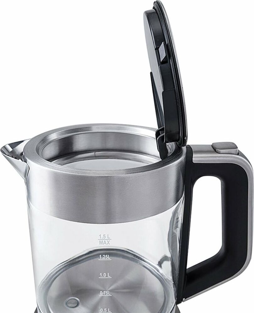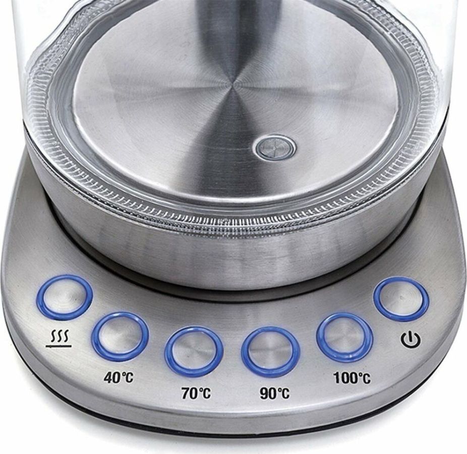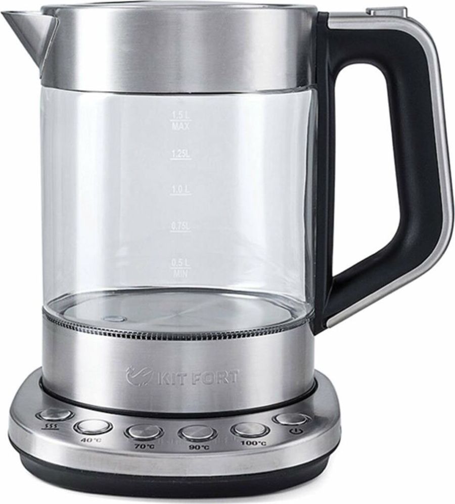 Мощность 2200 Вт. Максимальный объем 1.5 л. Нагревательный элемент скрытый. Индикатор включения есть. Индикатор уровня воды есть. Автоматическое отключение есть. Регулировка температуры нагрева есть. Температурные режимы 4 шт. Звуковой сигнал при закипании есть. Материал корпуса нержавеющая сталь/стекло. Цвет серебристый.