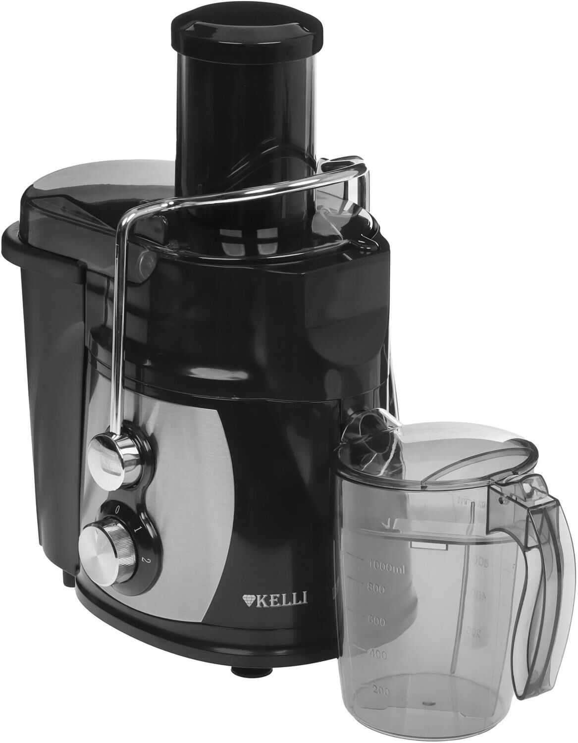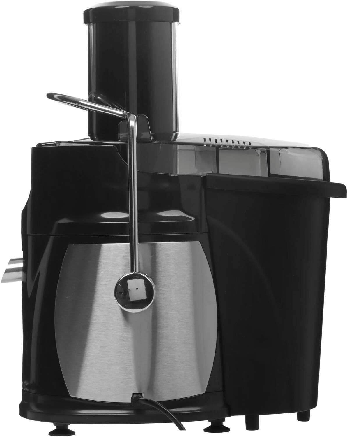 Соковыжималка центробежная. Мощность 1100 Вт, питание 220-240В, 50Гц, металлический корпус и фильтр, объем резервуара сока 1л., 2 скорости + импульный режим, широка я загрузочная горловина - 75мм, объем контейнера для жмыха 1л, функция "Капля-стоп, прорезиненные ножки, защита от перегрева и перегрузки, блокировка двигателя при открытой крышке, легкая очистка