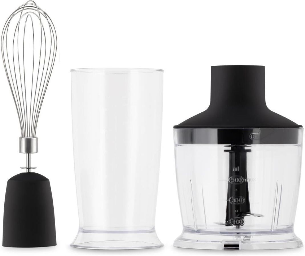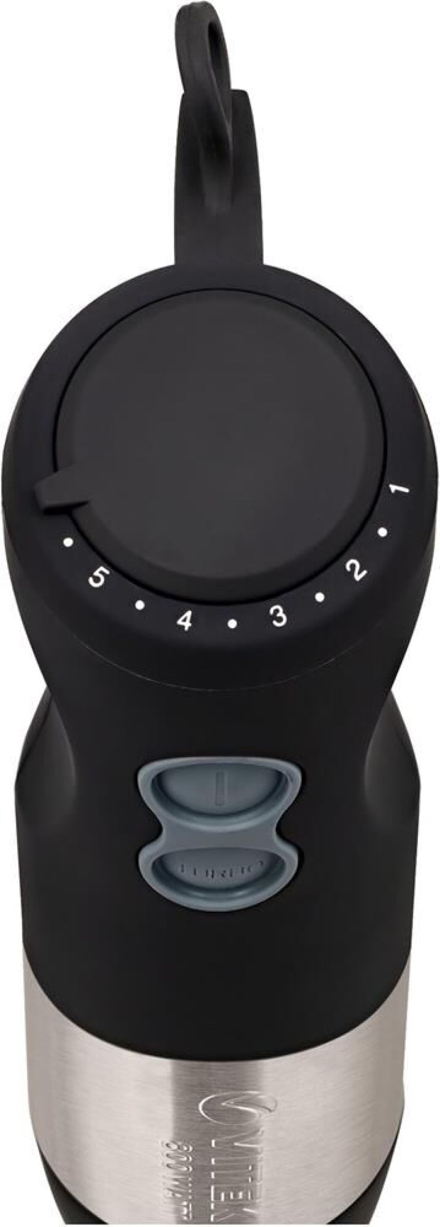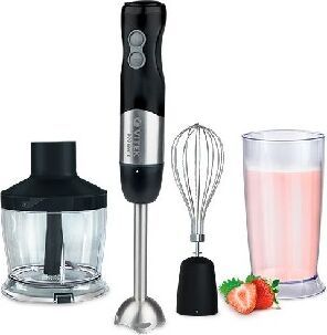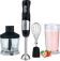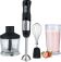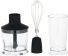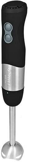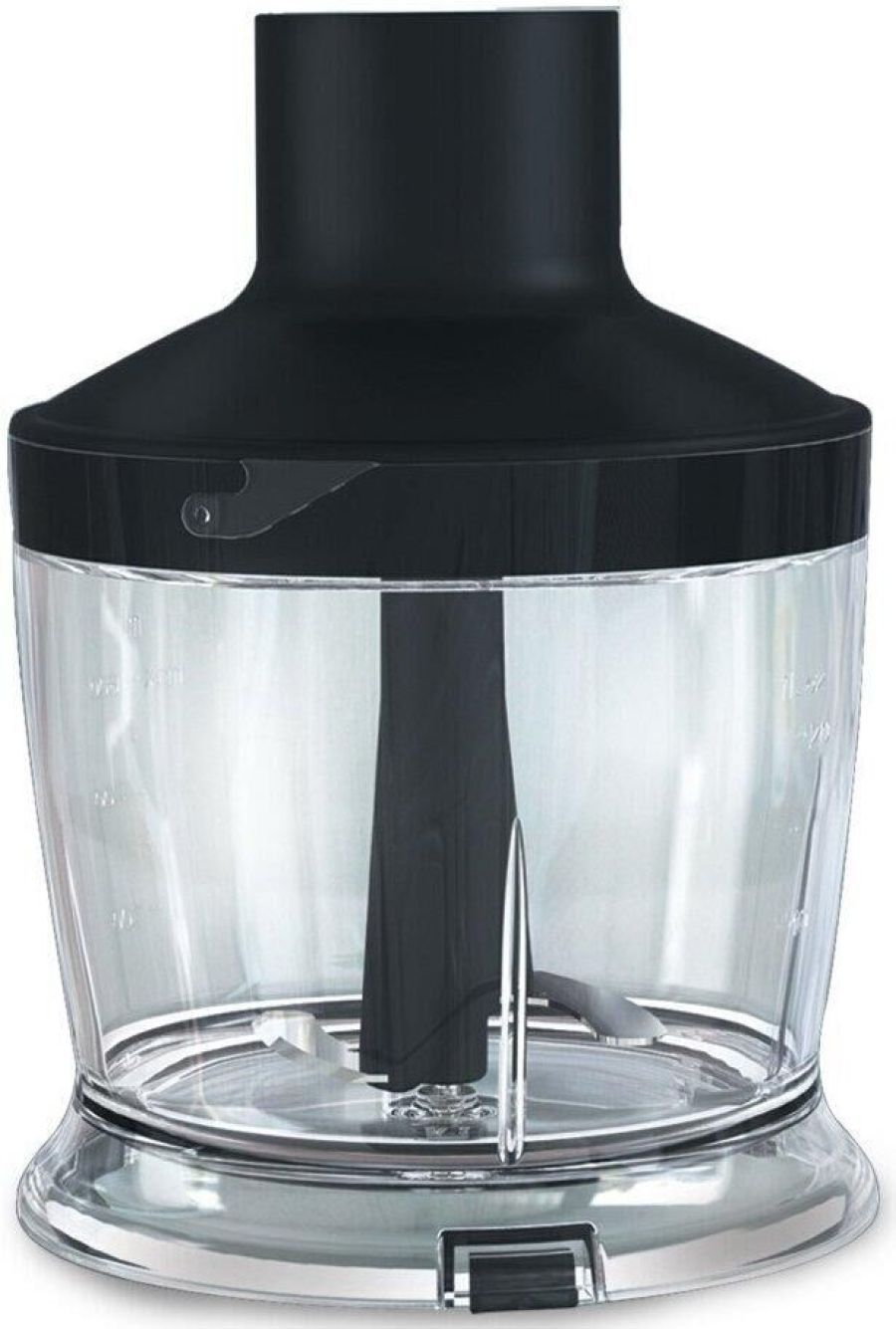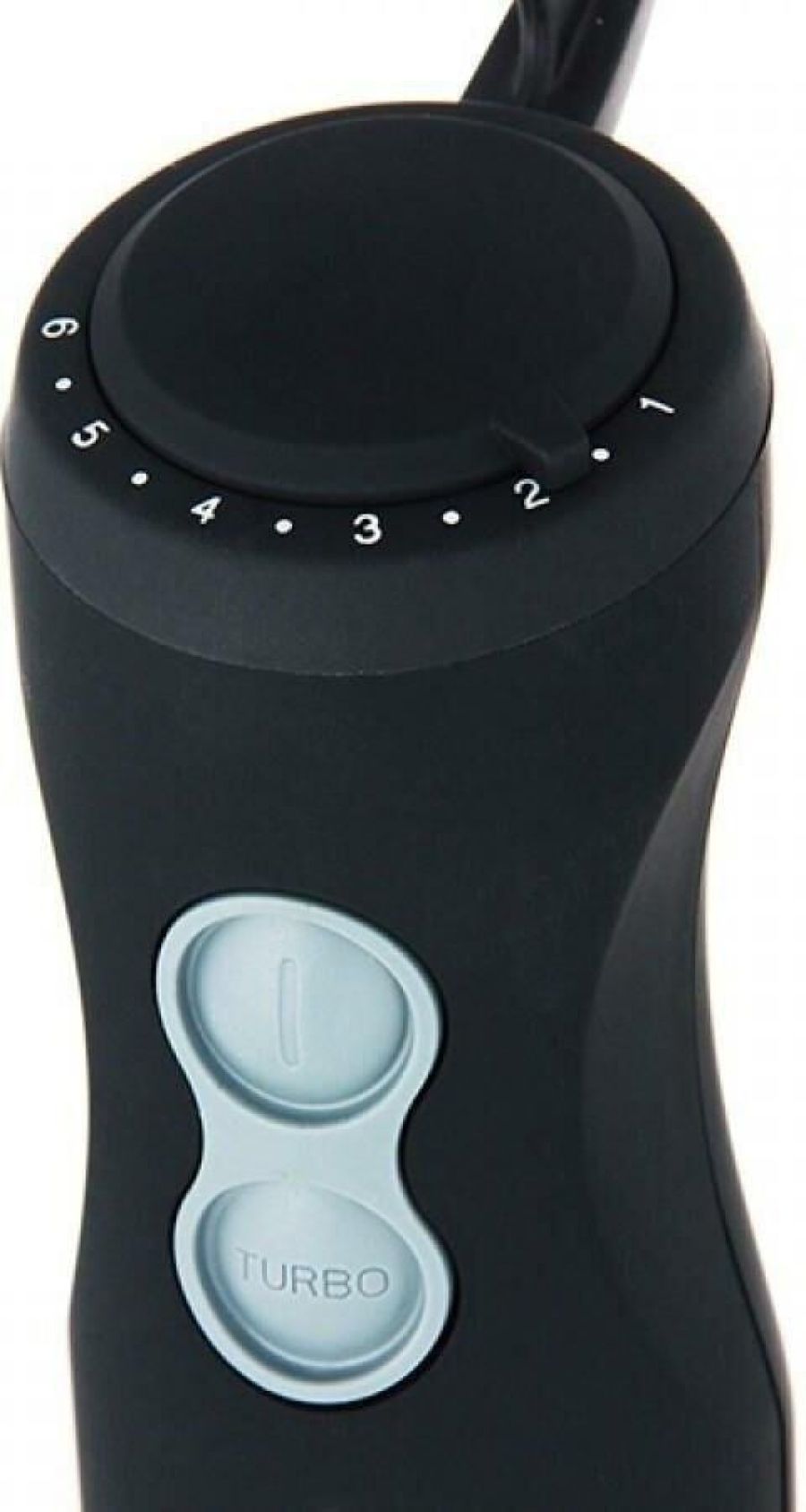 Блендер погружной. Мощность: 800 вт, Количество скоростей: 6, Турборежим, Плавная регулировка скорости, Управление: механическое, Материал корпуса: нержавеющая сталь/пластик, Материал погружной части: нержавеющая сталь, Емкость измельчителя: 500 мл, Емкость мерного стакана: 600 мл, Колка льда, Венчик для взбивания, Мерный стакан, Длина сетевого шнура: 120см, Измельчитель, Цвет: Черный.