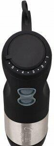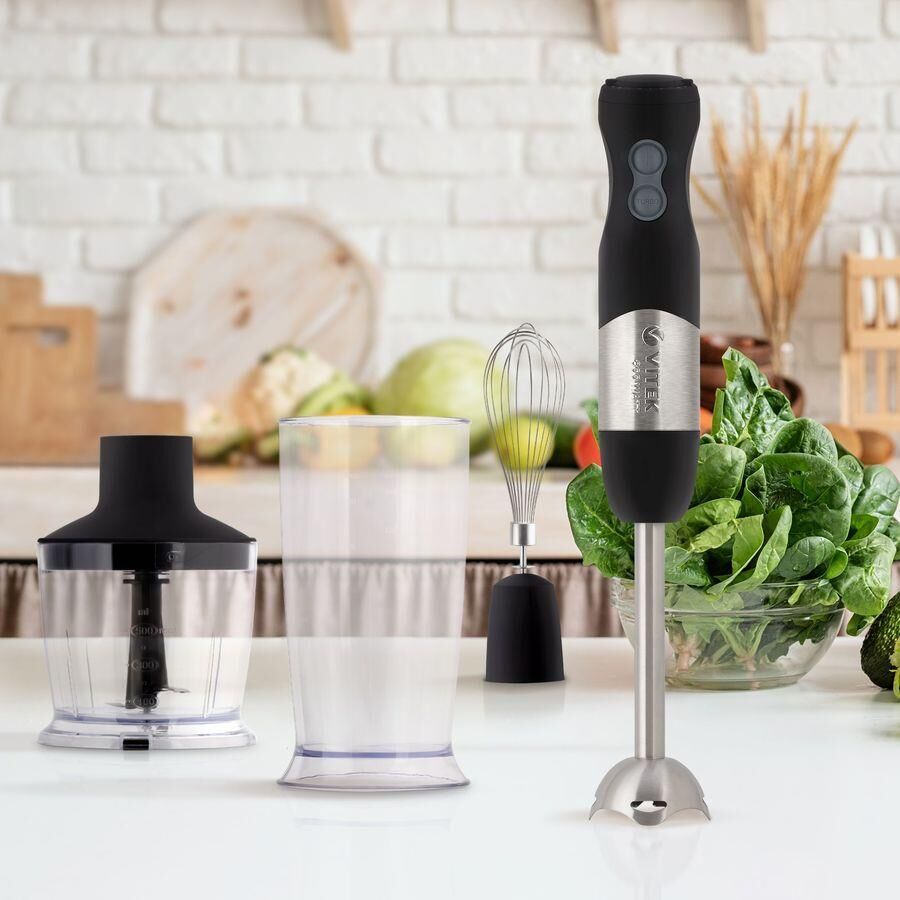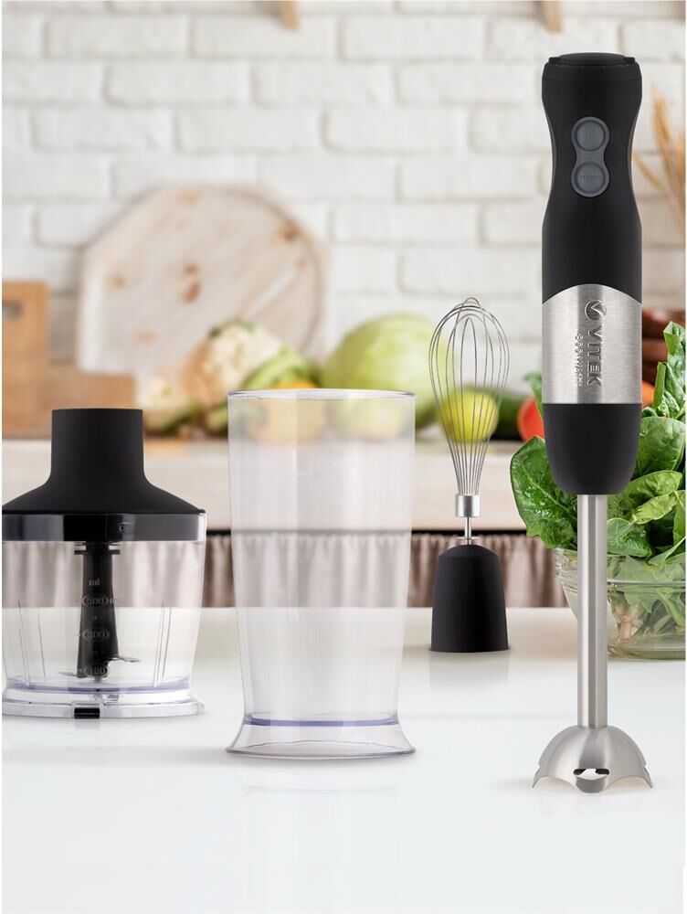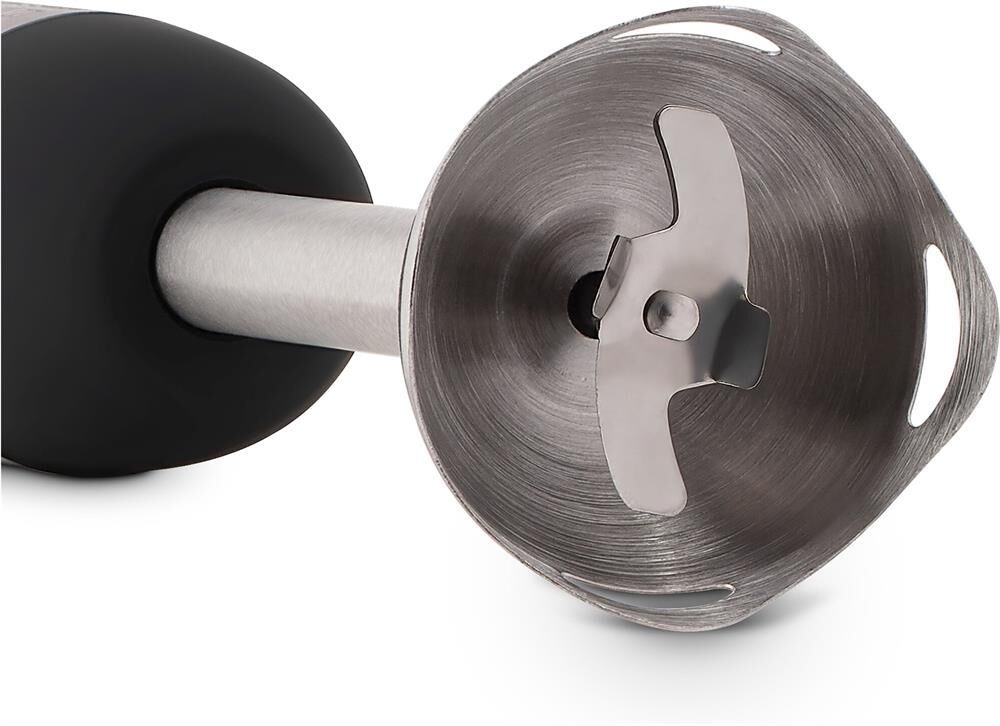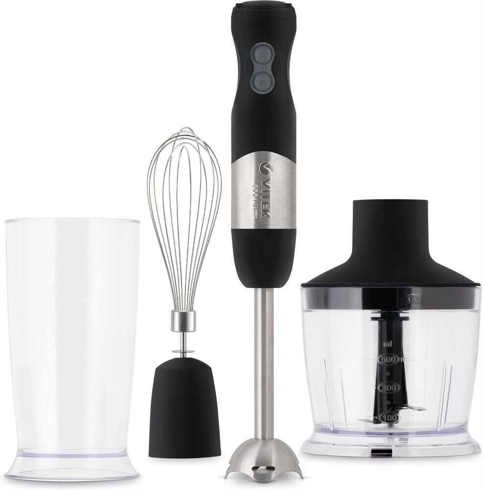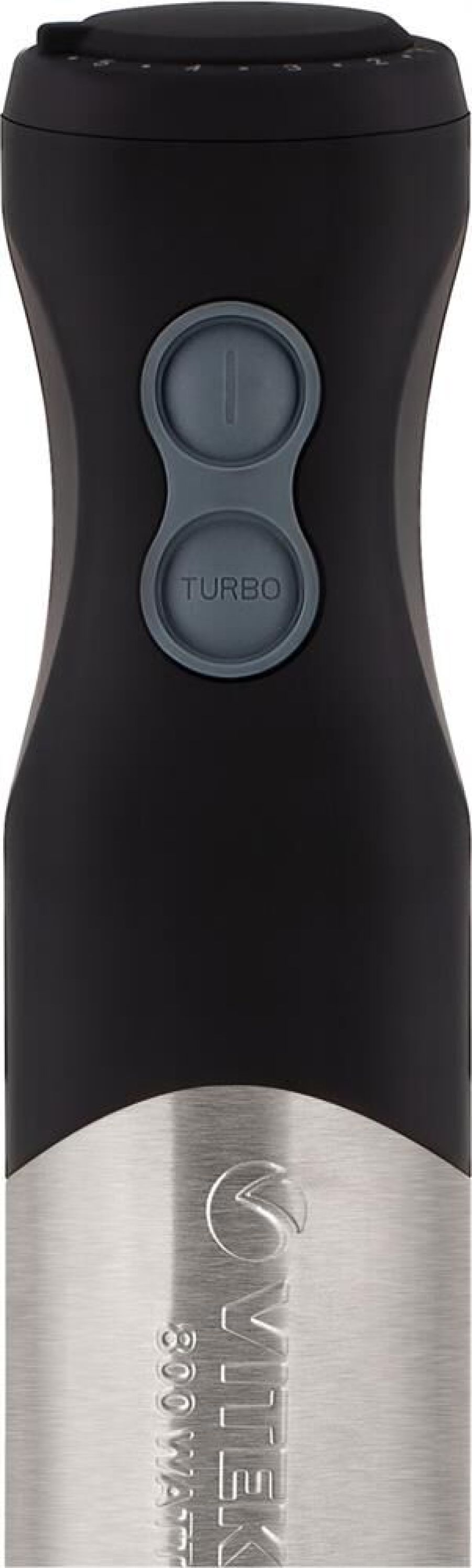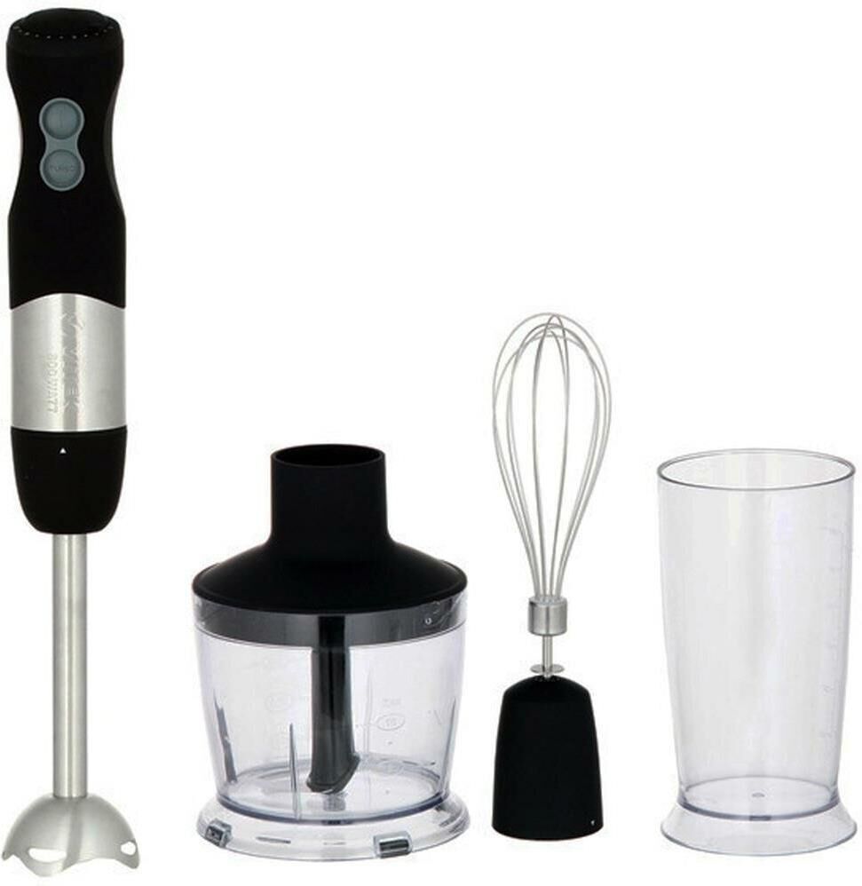 Блендер погружной. Мощность: 800 вт, Количество скоростей: 6, Турборежим, Плавная регулировка скорости, Управление: механическое, Материал корпуса: нержавеющая сталь/пластик, Материал погружной части: нержавеющая сталь, Емкость измельчителя: 500 мл, Емкость мерного стакана: 600 мл, Колка льда, Венчик для взбивания, Мерный стакан, Длина сетевого шнура: 120см, Измельчитель, Цвет: Черный.