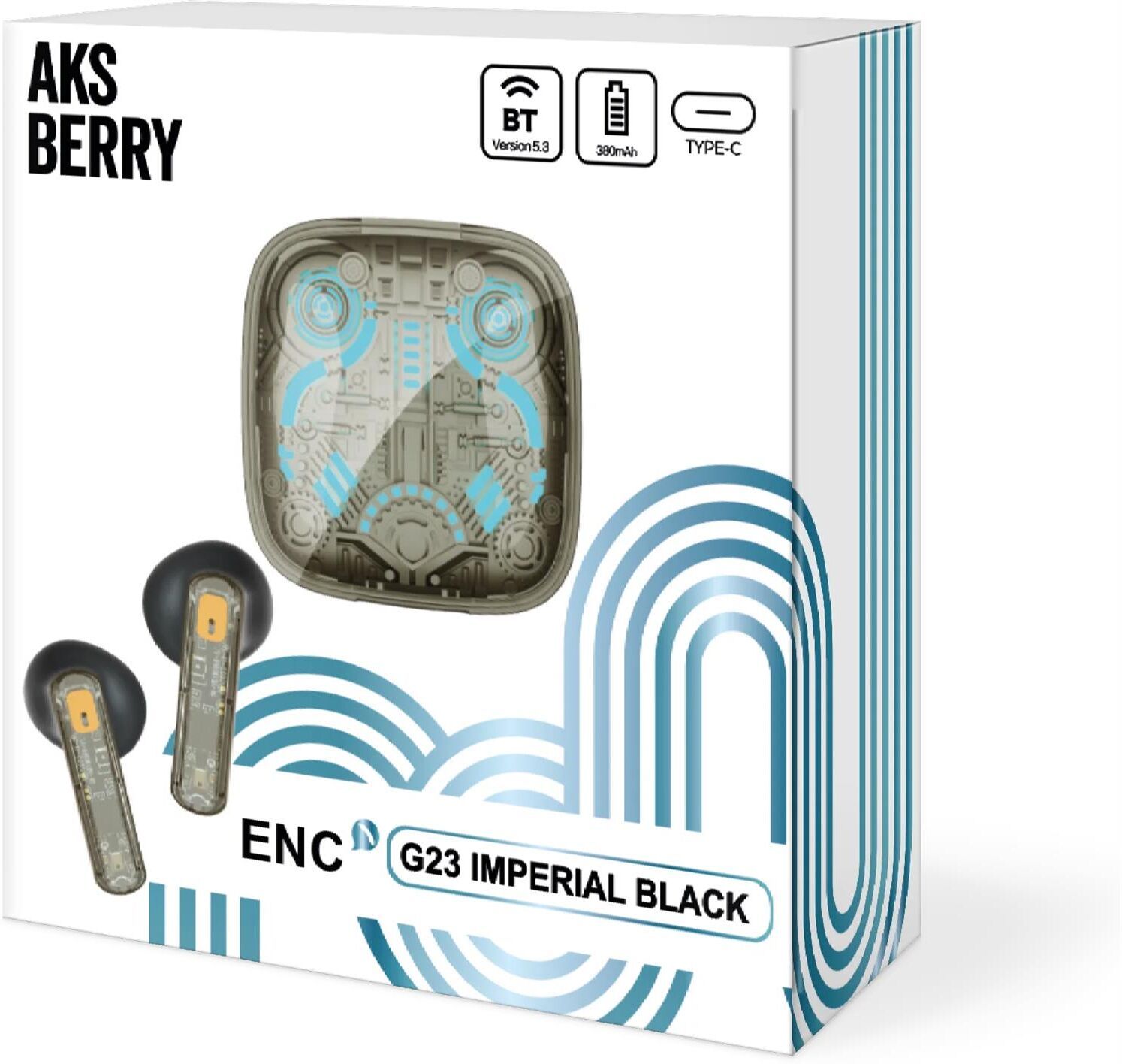 Беспроводные наушники с микрофоном Aksberry G23 Imperial Вид: вкладыши TWS Подключение: Bluetooth Мощность аккумулятора: 380 мАч до 6ч Разъем зарядки: USB-C Цвет: черный Особенности: ANC IPX4