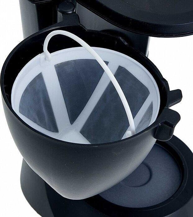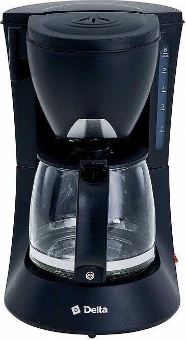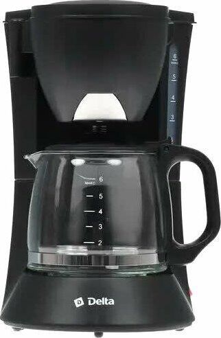 Мощность 600Вт. Вместимость 6 чашек (0,6л). Корпус из высококач. пластика. Стекл. резервуар д/кофе. Система поддержания температуры. Функция Антикапля. Защита от перегрева. Съемный многоразовый фильтр. Цвет: черный.