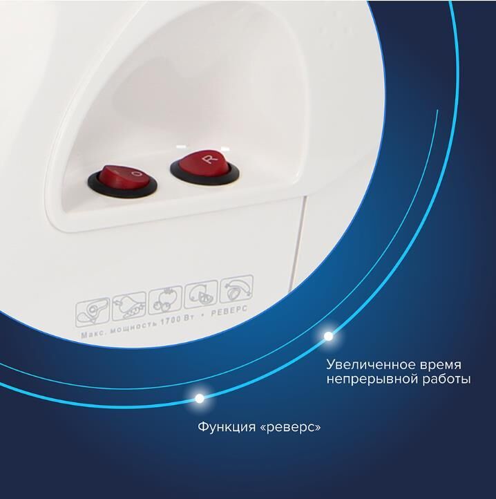 Номинальная потребляемая мощность 250 Вт. Максимальная потребляемая мощность, Вт 260. Мощность 1700 Вт. Реверс. Срок службы, лет 5. Производительность 2 кг/мин. Панель управления Механическая. Длина провода 1,5 м. Вес, кг 5.7 кг.