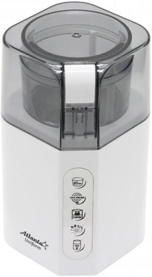 Мощность 180 Вт. Современный дизайн. Защита от случайного включения. Ножи из нержавеющей стали. Рассчитана на 80 мл кофе за раз. Удобное хранение шнура. Цвет белый.
