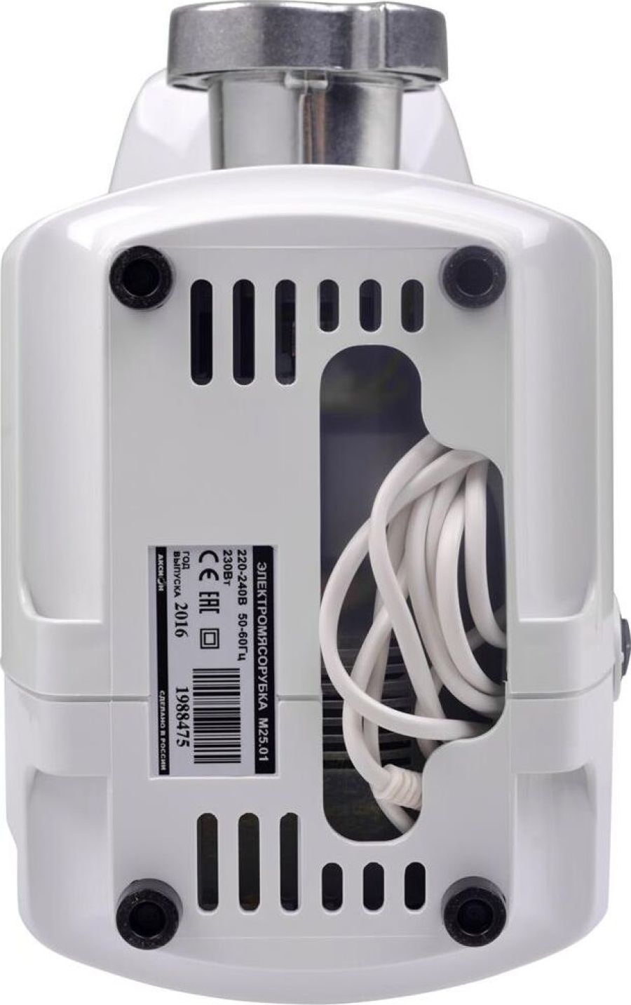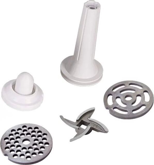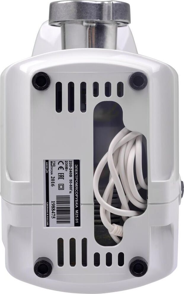 Белый мощность: 230 Вт производительность: 1.7 кг/мин насадки: насадка для приготовления колбас, насадка для кеббе, диск для фарша материал корпуса: пластик особенности: прорезиненные ножки, мытье в ПММ. Габаритные размеры (ШxВxГ) 22/16,4/22,6 кг.