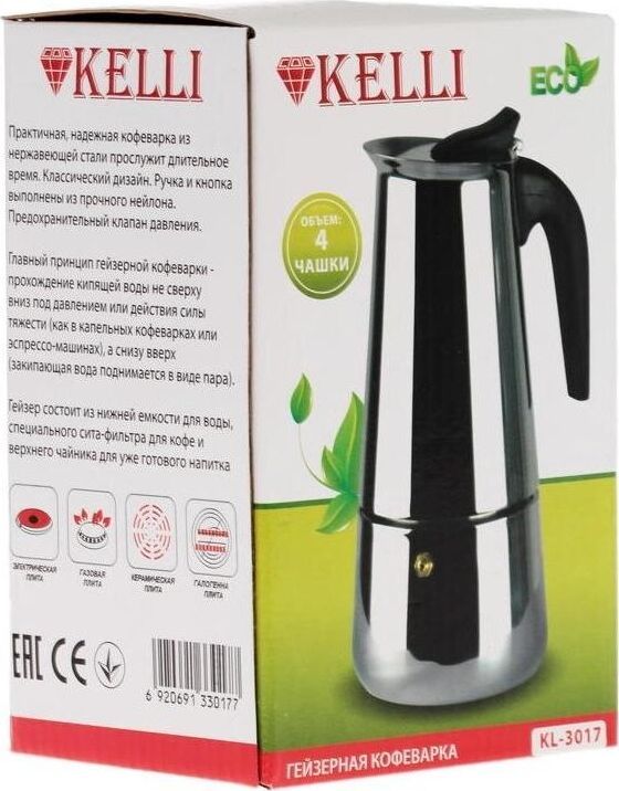 Комплектация: Гейзерная кофеварка Kelli KL-3017, 200 мл