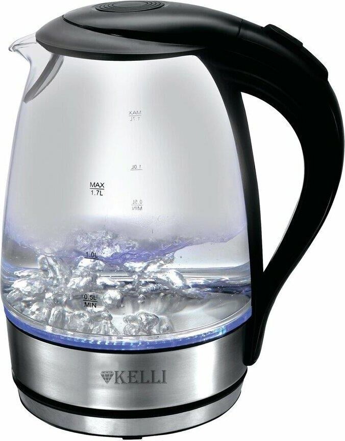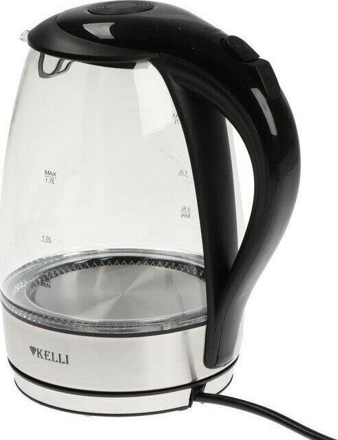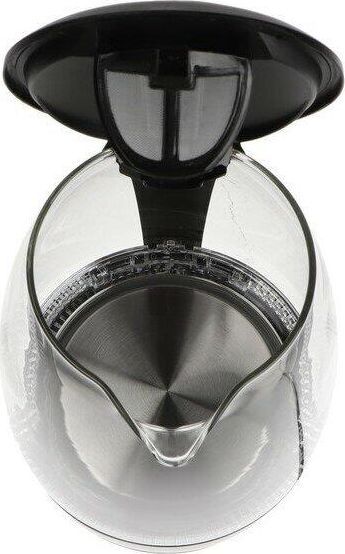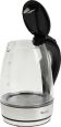 Электрический стеклянный чайник Объем: 1,7 л. Термостойкое боросиликатное стекло. Внутренняя подсветка. Шкала уровня воды. Автоматическое отключение. Поворачивающийся корпус на 360°. Закрытый нагревательный элемент. Защита от перегрева. 220-240 В, 50 Гц, 1850-2200 Вт.