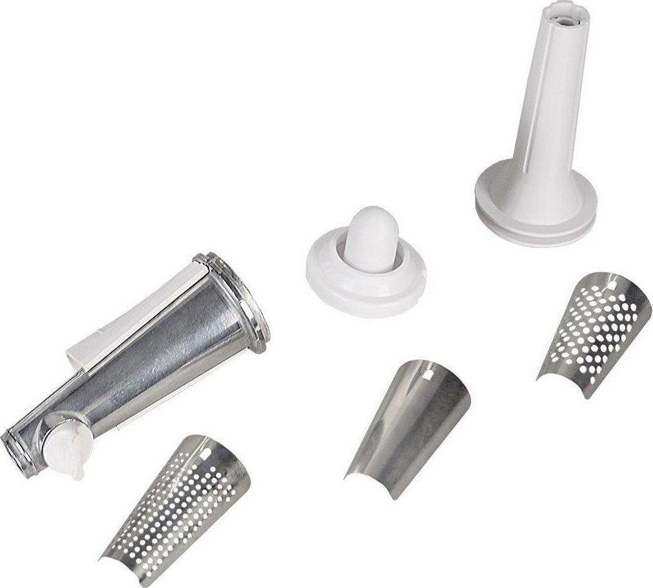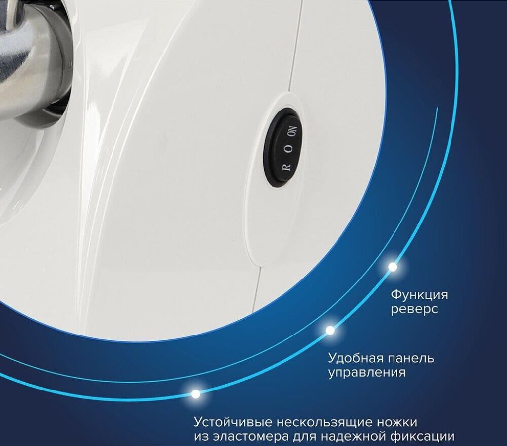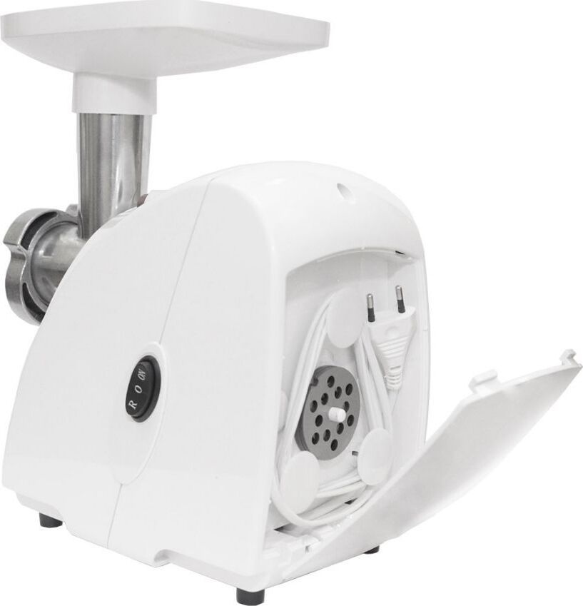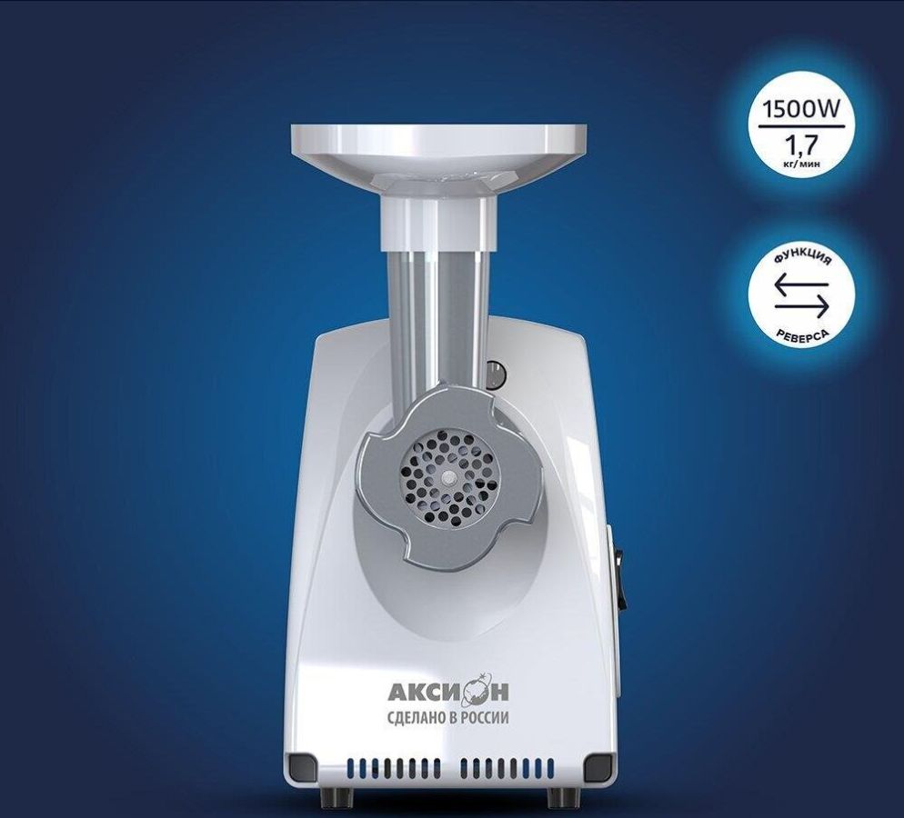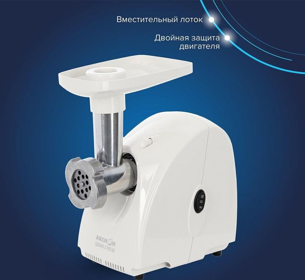 Максимальная мощность 1500 Вт, номинальная мощность 230 Вт, производительность — до 100 кг/час. Функция РЕВЕРС. Комплектуется приставкой — соковыжималкой.; набивки колбасных изделий. Предназначена для получения соков с мякотью из мягких овощей, фруктов, ягод; Защита двигателя от перегрузки; 3 вида решеток для получения фарша разной консистенции - с диаметром отверстий 4,9 мм и 7 мм, а также овальными отверстиями; Удобное хранение ножей и решеток; Высокое размещение шнековой камеры; Функция «реверс» для предотвращения наматывания жилок на шнек; Устойчивые нескользящие ножки для фиксации мясорубки на поверхности стола;