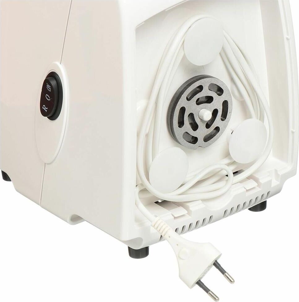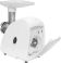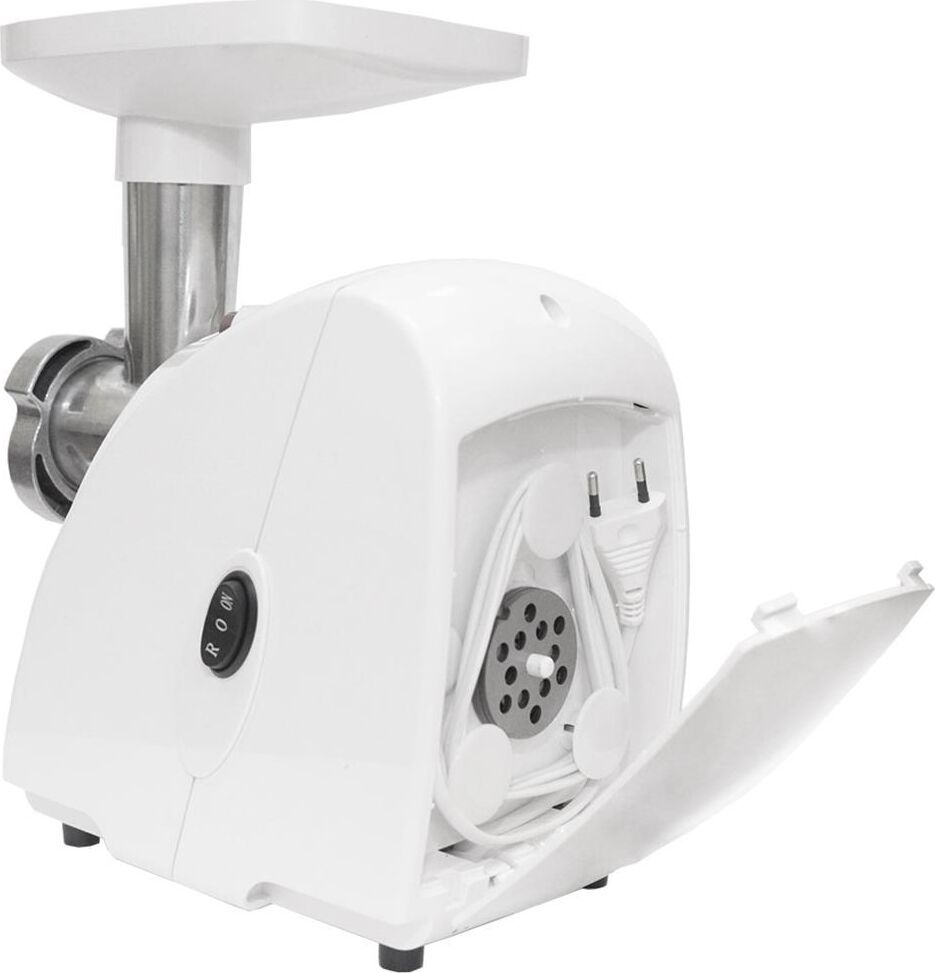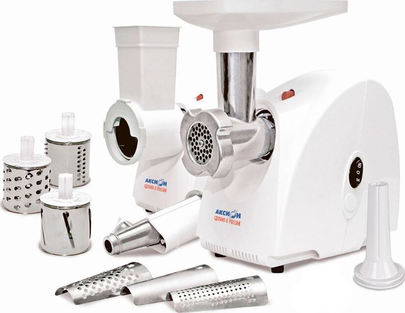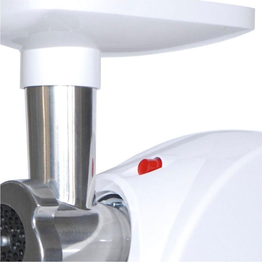 Максимальная мощность 1500 Вт, номинальная мощность 230 Вт, производительность — 1,7 кг/мин Защита двигателя от перегрузки; 3 вида решеток для получения фарша разной консистенции - с диаметром отверстий 4,9 мм и 7 мм, а также овальными отверстиями; Удобное хранение ножей и решеток; Высокое размещение шнековой камеры; Функция «реверс» для предотвращения наматывания жилок на шнек; Устойчивые нескользящие ножки для фиксации мясорубки на поверхности стола;