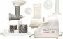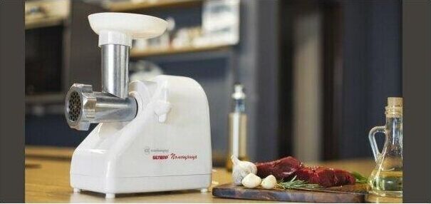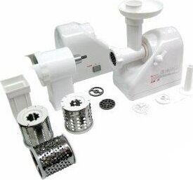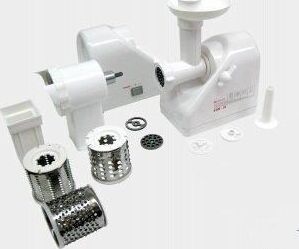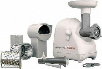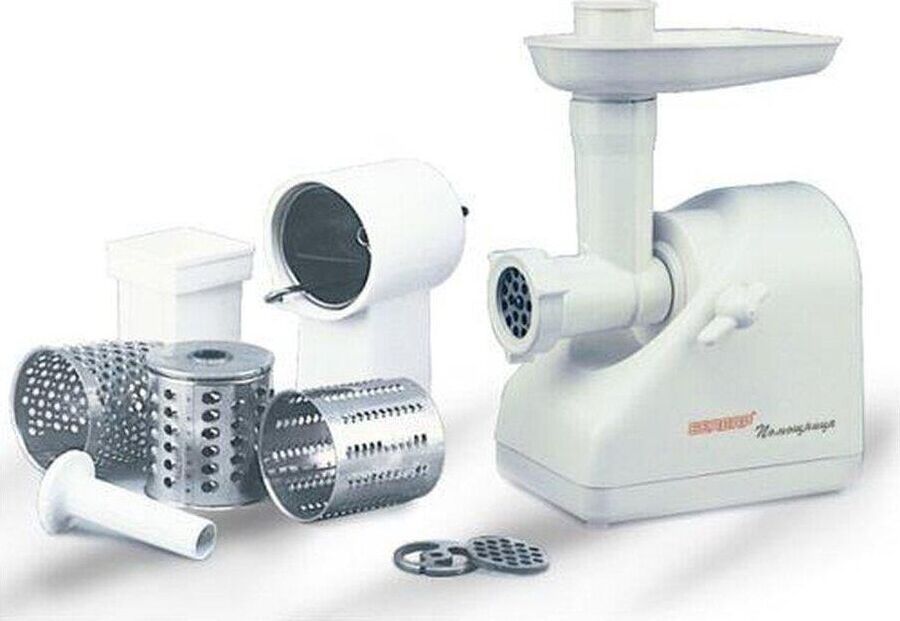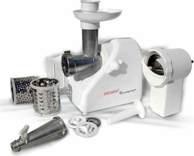 Белый мощность: 220 Вт производительность: 0.6 кг/мин система реверса: есть насадки: насадка-терка, насадка для приготовления колбас, насадка для нарезки печенья, насадка для шинковки, диск для фарша материал корпуса: пластик особенности: отсек для хранения насадок, отсек для хранения шнура