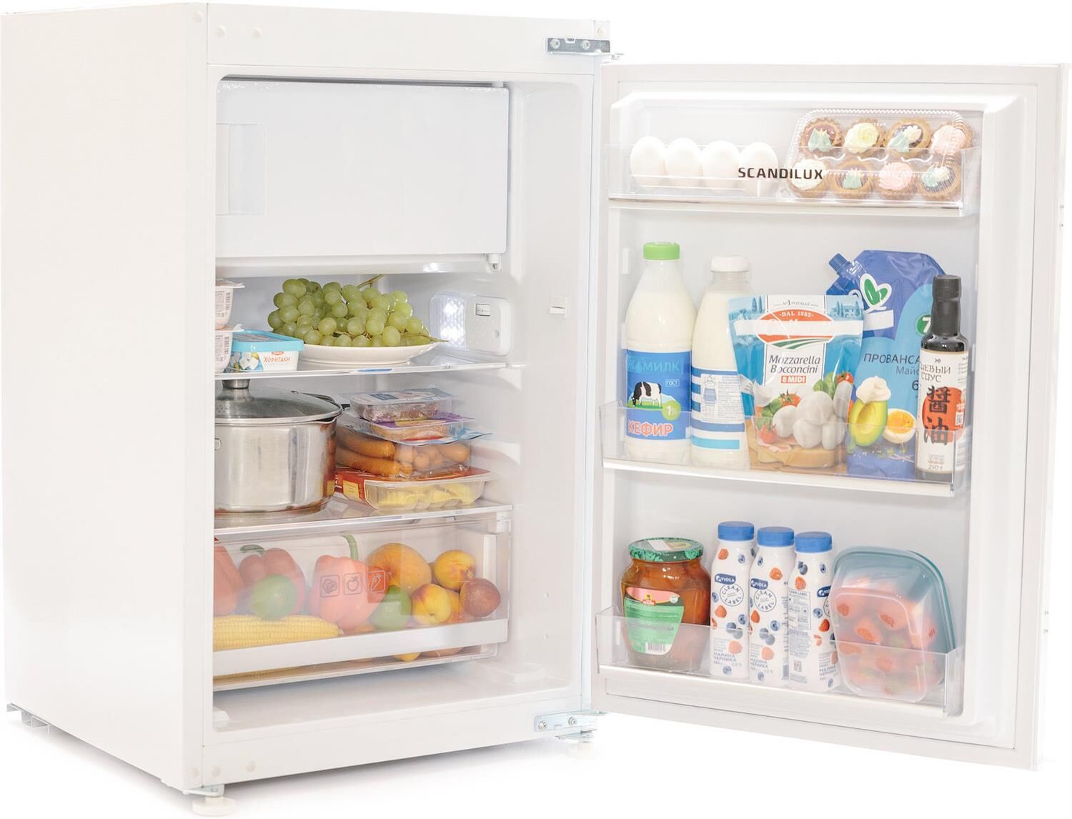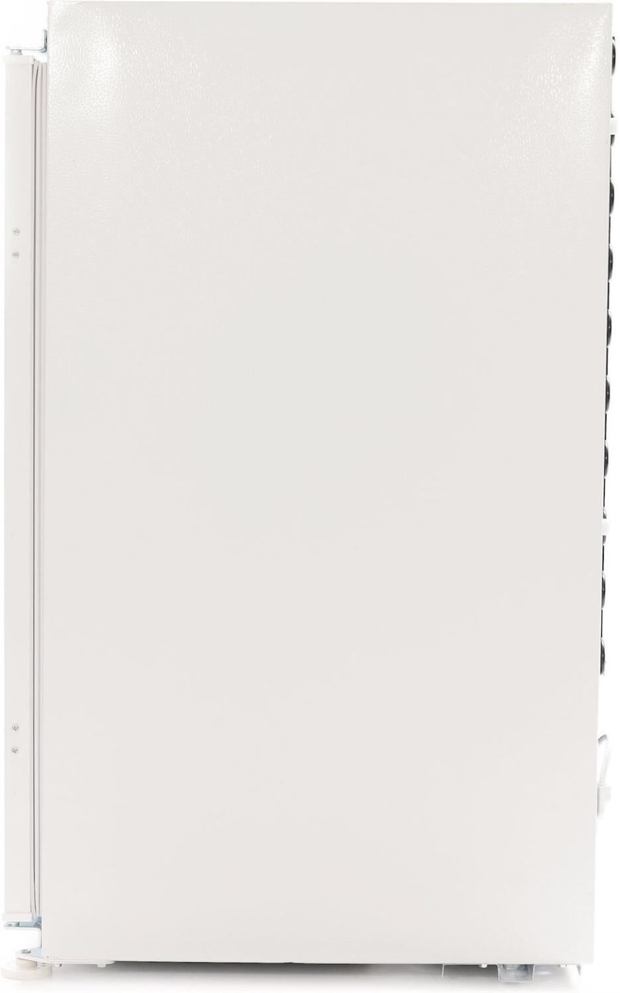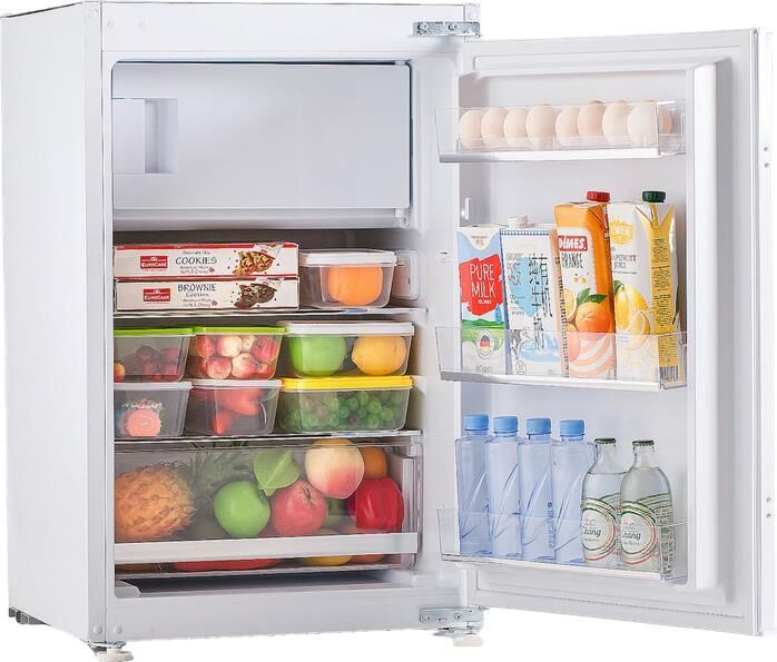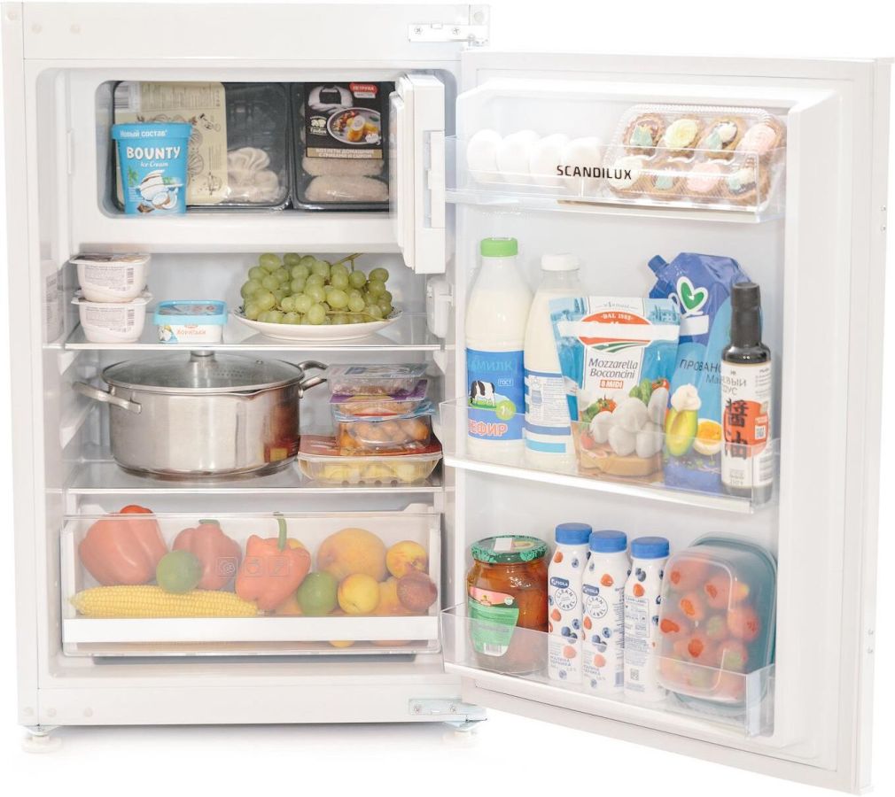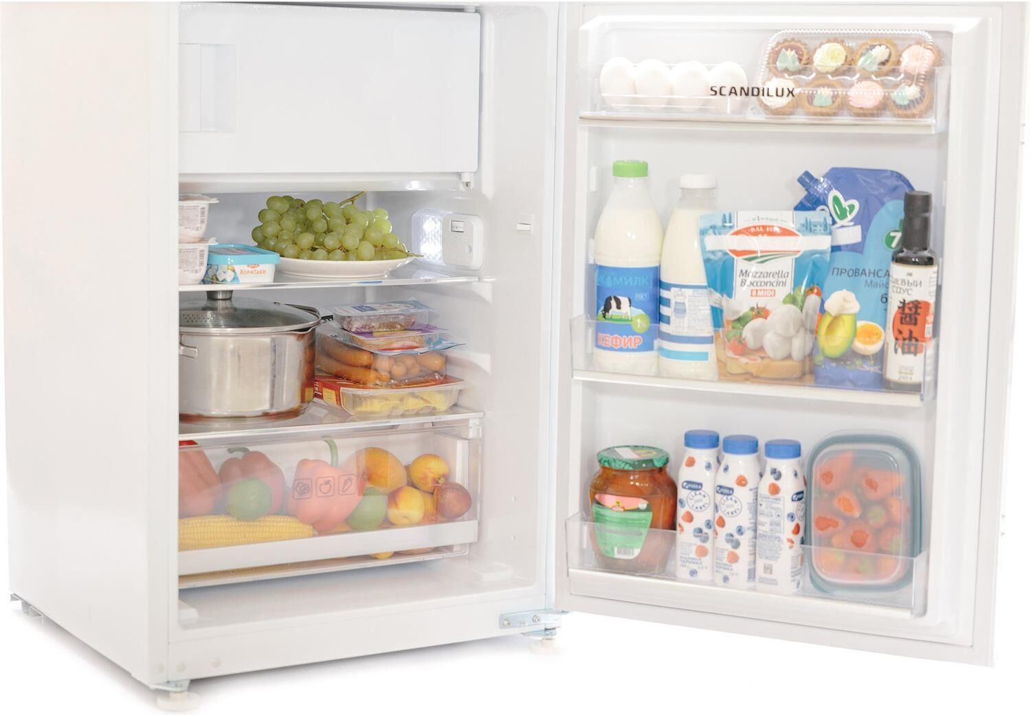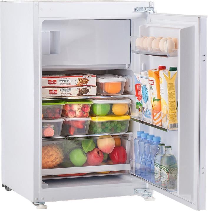 Габариты ВхШхГ, см: 87,2х55,5х54,5; Объём 126 литров. Холодильник шириной 87 см с одной дверью, небольшой морозильной камерой, ручной разморозкой, механическим управлением, перенавешиваемой дверью, серебристой отделкой на полке двери и стеклянной полке, скользящими направляющими, 1 стеклянной полкой, 3 дверными полками.