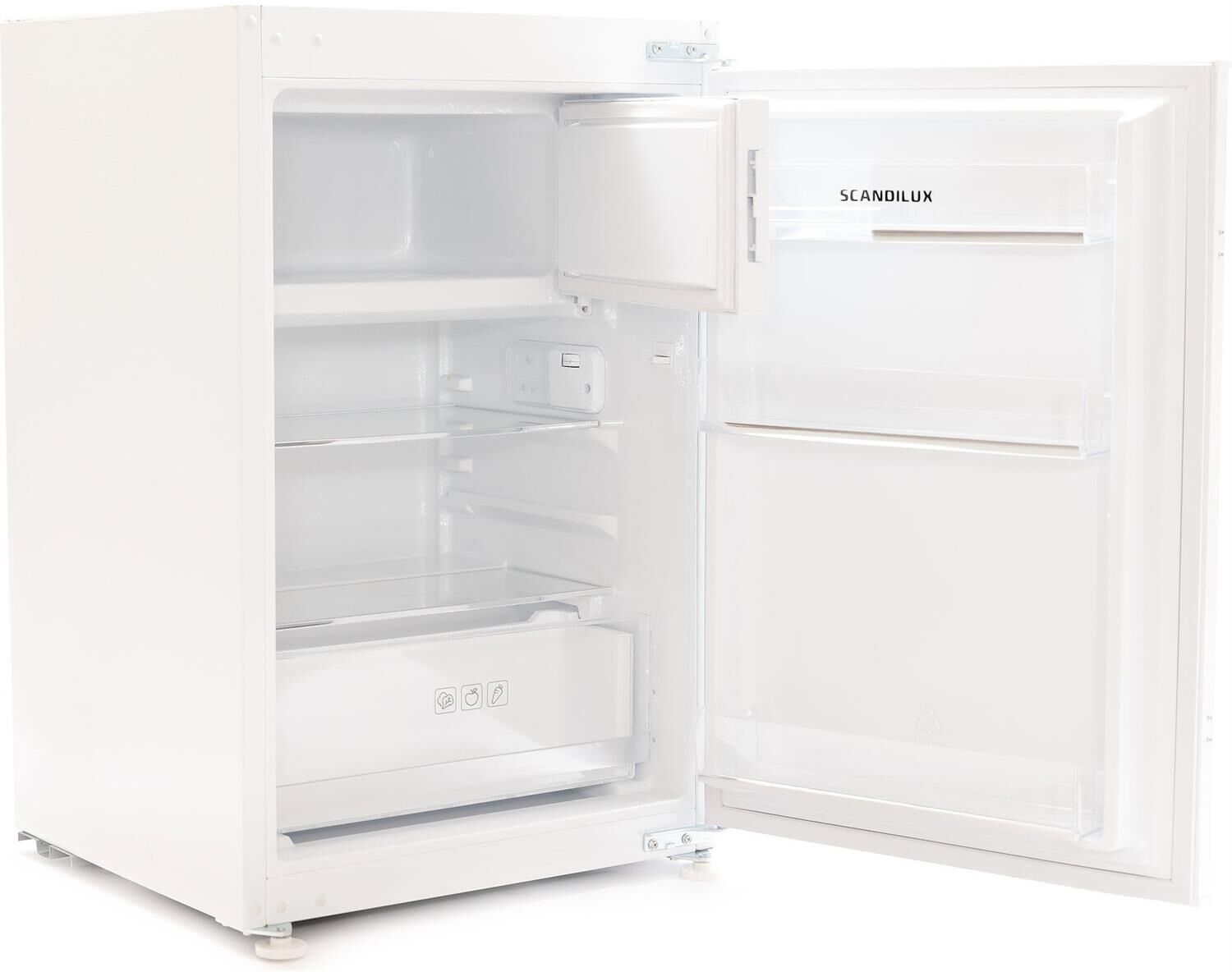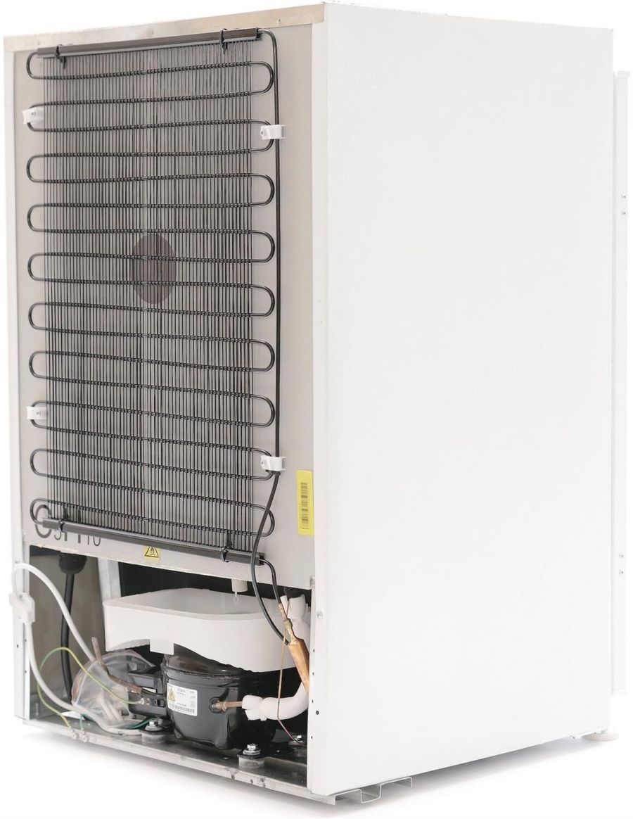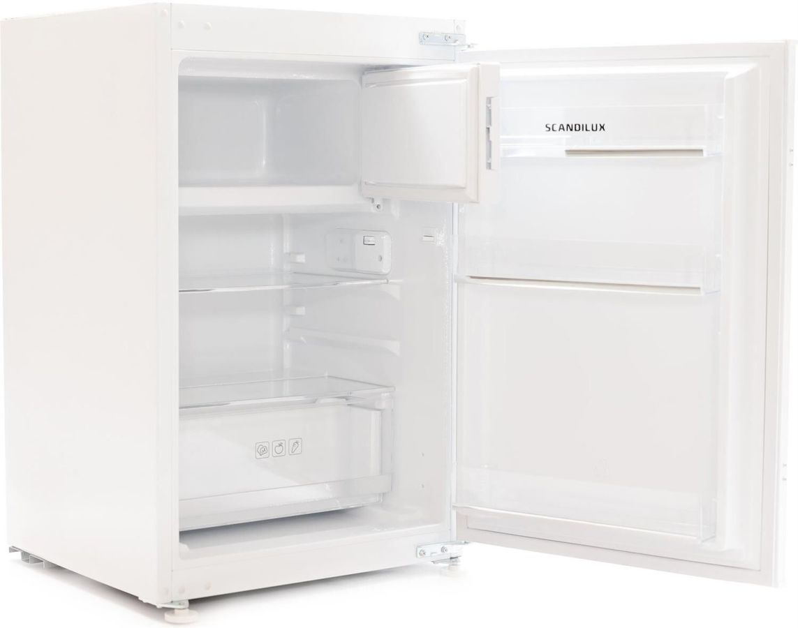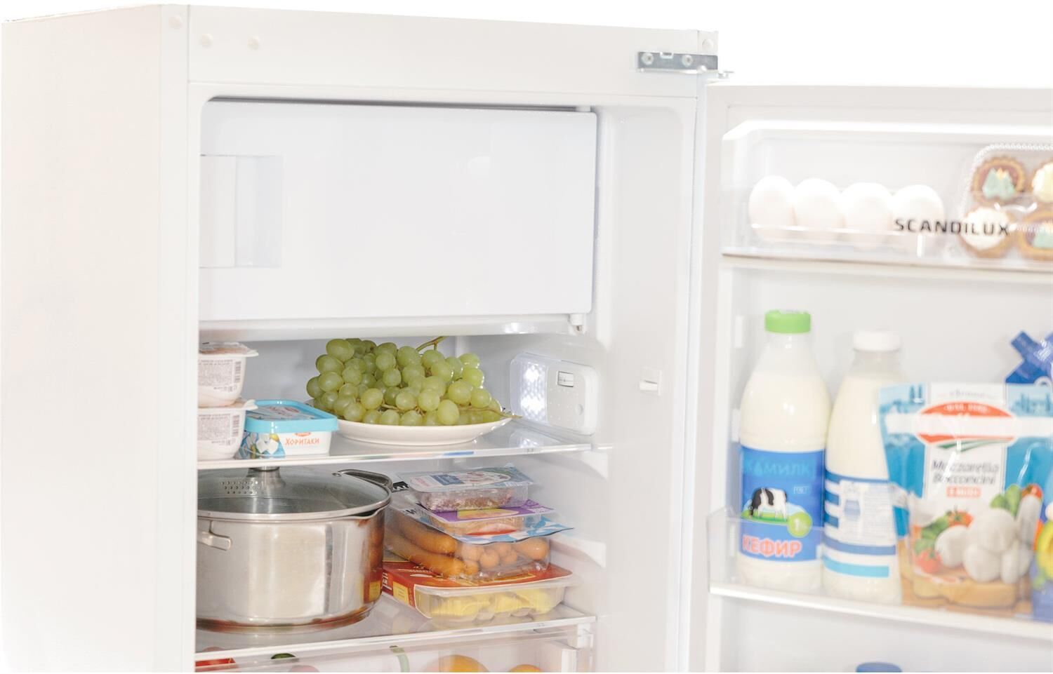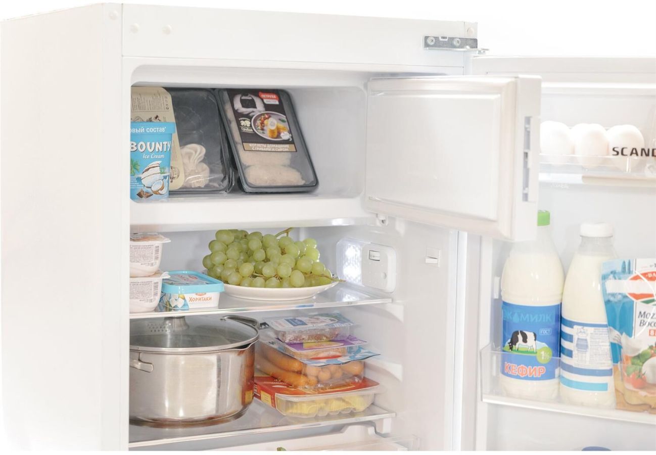 Габариты ВхШхГ, см: 87,2х55,5х54,5; Объём 126 литров. Холодильник шириной 87 см с одной дверью, небольшой морозильной камерой, ручной разморозкой, механическим управлением, перенавешиваемой дверью, серебристой отделкой на полке двери и стеклянной полке, скользящими направляющими, 1 стеклянной полкой, 3 дверными полками.