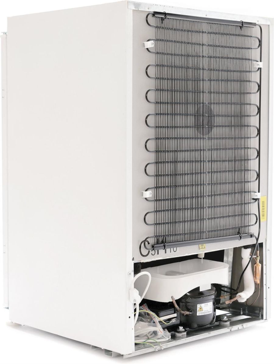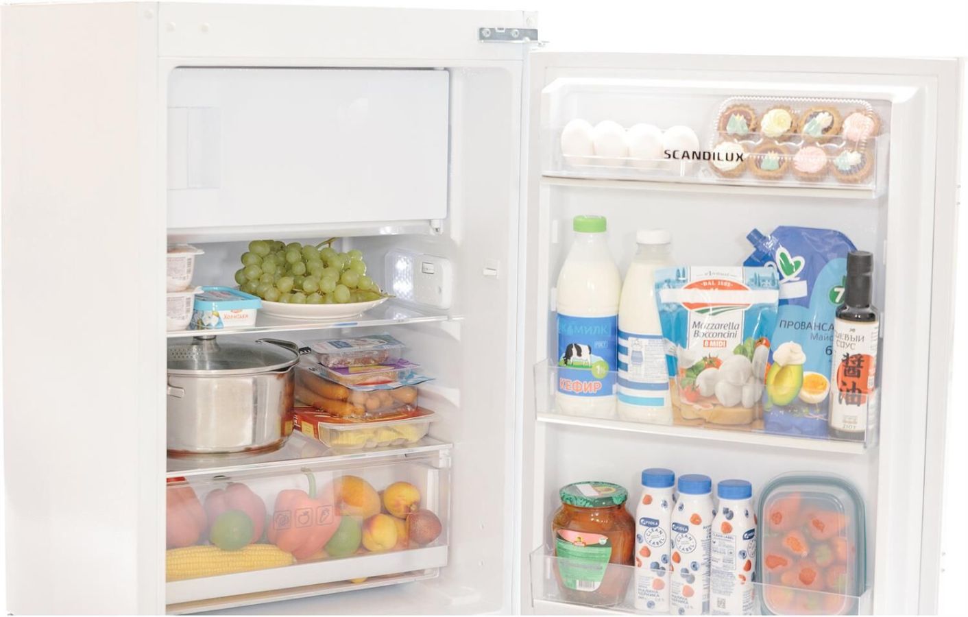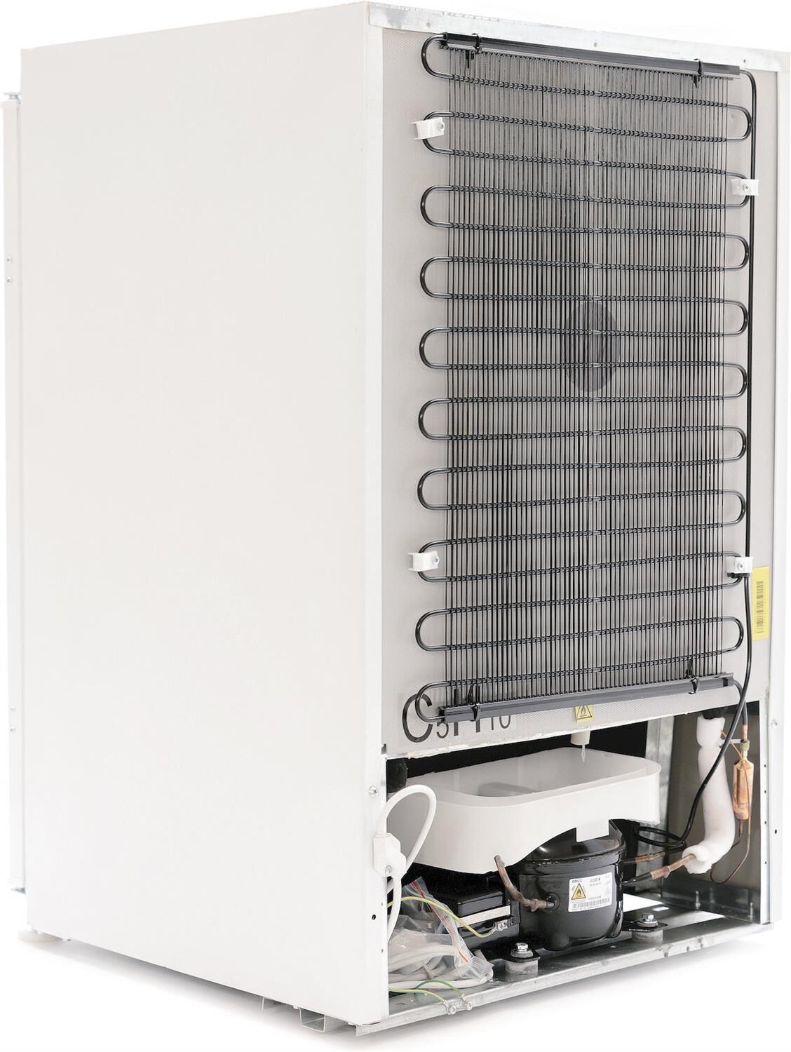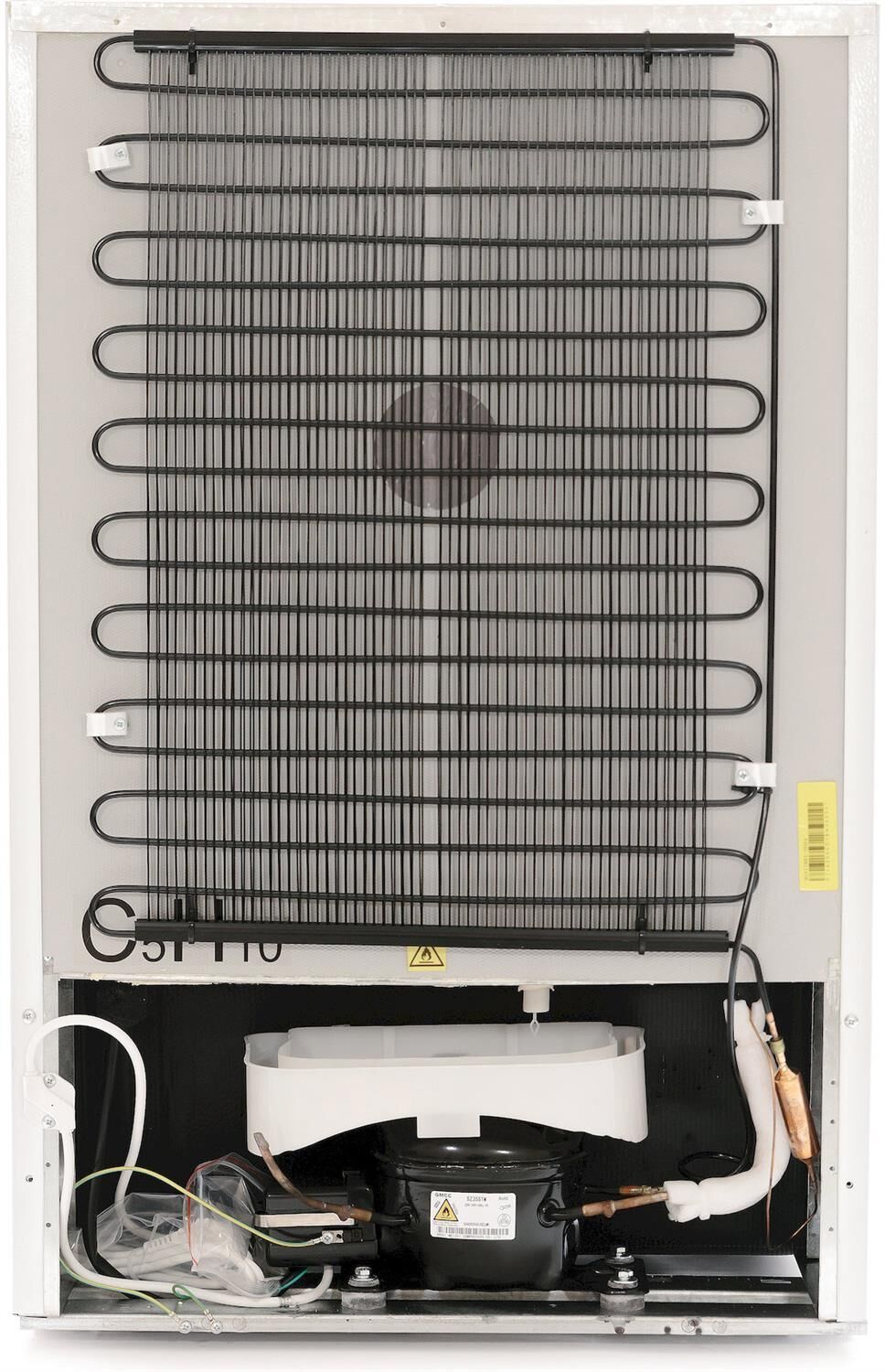Габариты ВхШхГ, см: 87,2х55,5х54,5; Объём 126 литров. Холодильник шириной 87 см с одной дверью, небольшой морозильной камерой, ручной разморозкой, механическим управлением, перенавешиваемой дверью, серебристой отделкой на полке двери и стеклянной полке, скользящими направляющими, 1 стеклянной полкой, 3 дверными полками.