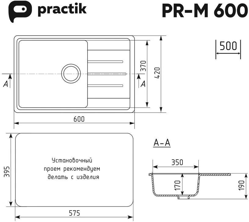 Компактная односекционная реверсивная мойка Practik PR-M 600 отлично подходит подходит для малогабаритной кухни. Мойка является оборачиваемой - крыло может располагаться как справа,так и слева. Особенностью мойки является возможность ее установки на узкую столешницу шириной 50 см, при этом ширина шкафа (мебельная база) также идет от 50 см. Материал мойки представляет из себя искусственный камень, который является композитом на основе натурального мрамора и связующих смол. Искусственный камень существенно снижает уровень шума при падении струи воды. Специальное покрытие гелькоут защищает поверхность мойки от загрязнений и бытовых царапин, делая уход за мойкой легким и простым. Заводская гарантия составляет 1 год, а срок службы данной мойки, при соблюдении основных правил ухода за ней, составляет более 10 лет.