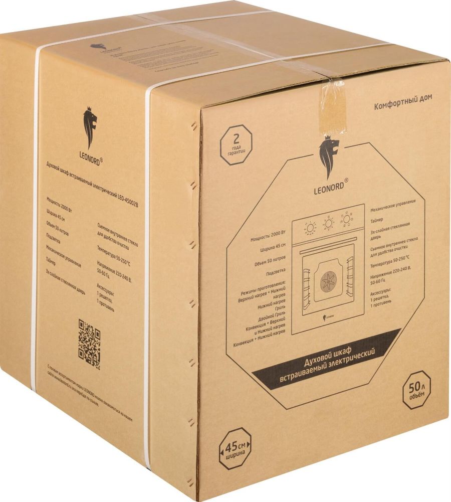 Мощность 2000 Вт Ширина 45 см Объем 50 литров Механиеческое управление 6 режима приготовления -Верхний нагрев + Нижний нагрев -Нижний нагрев -Гриль -Двойной гриль -Конвекция + Верхний нагрев + Нижний нагрев -Конвекция + Нижний нагрев 3х-слойная стеклянная дверь Таймер Cъемное внутреннее стекло для удобства очистки Хромированные направляющие Подсветка Максимальная температура 250 °С Длина шнура 120 см Аксессуары: 1 решетка, 1 противень Напряжение 220-240 В, 50-60 Гц Гарантия 2 года