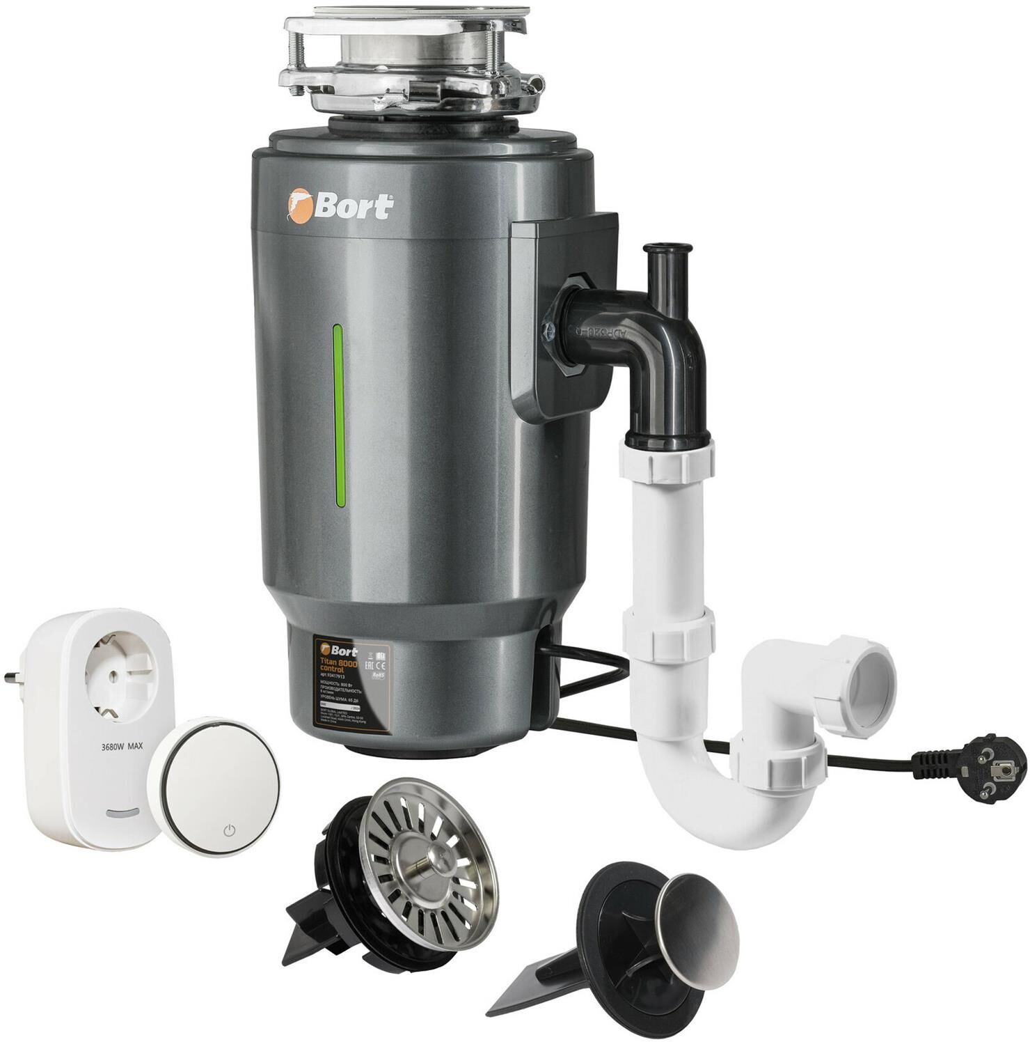 Назначение бытовой; Число ступеней измельчения 3 ; Система шумоизоляции полная; Мощность 800 Вт; Объем камеры 1400 мл; Материал корпуса камеры Прочный композитный материал; Материал измельчающих частей камеры Нержавеющая сталь; Система защиты от перегрузки и заклинивания; Скорость холостого хода 4200 об/мин; Вес изделия 5,5 кг; Напряжение сети 220 В; Частота тока 50 Гц; PMDC; Мощность л.с. 1 л.с.; Производительность 6 кг/мин; Диаметр сливного отверстия 3 1/2" (90мм); Толщина дна раковины 1...18 мм; Уровень шума 65 дБ; автовыключение; Длина шнура питания 1,2 м; Размер 386х210 мм; ; ; Электронное; Беспроводное тип; Вес брутто=7 (Вес нетто=6) кг; 25,5 x 25,5 x 54,5; набор аксессуаров 8 шт; гарантия 2 г