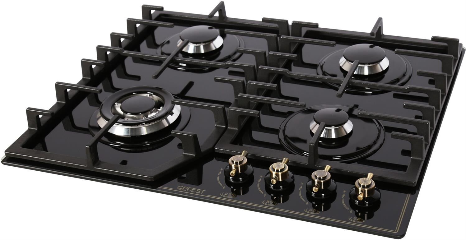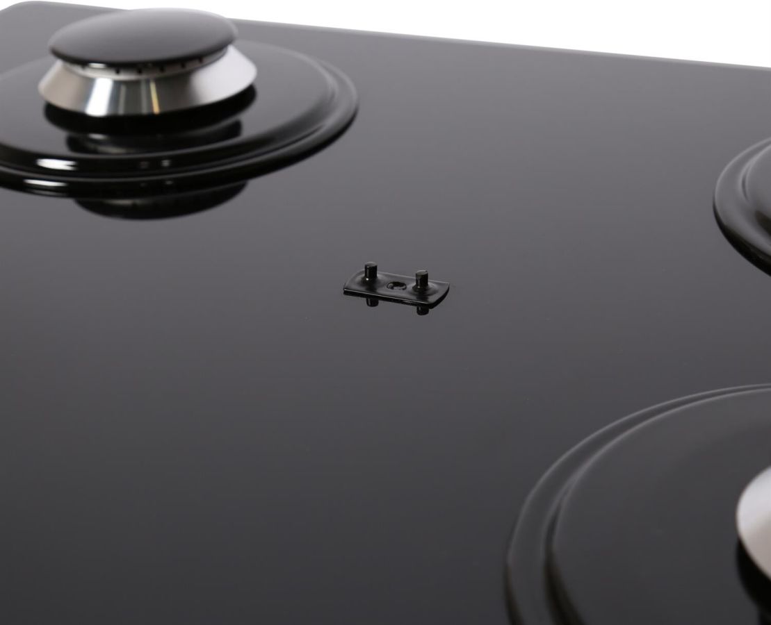 Размеры монтажного проема, ШхГ, см: 55,4 х 48,6; Ширина, см: 60; Глубина, см 52,5; Высота, см: 10; Вес: 13,5 кг; Цвет: Черный; Всего конфорок на варочной панели: 4; Тип подключения: Газовый; Материал рабочей поверхности: Стекло; Решетка: Чугун; Механическое управление; Электроподжиг автоматический; Поворотные переключатели; Газ-контроль конфорок; Тип подключения: Газовый; Газ-контроль горелок стола; Электропджиг горелок стола встроен в ручки