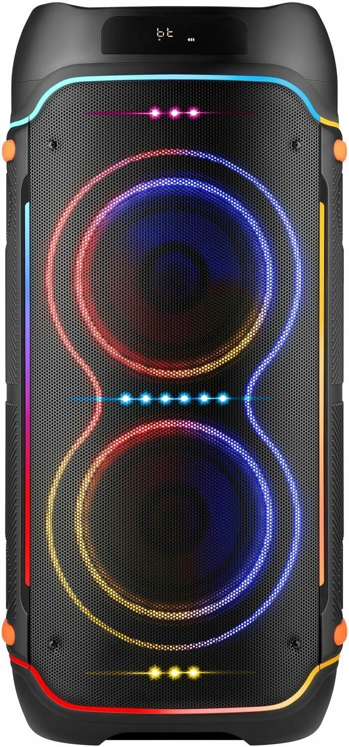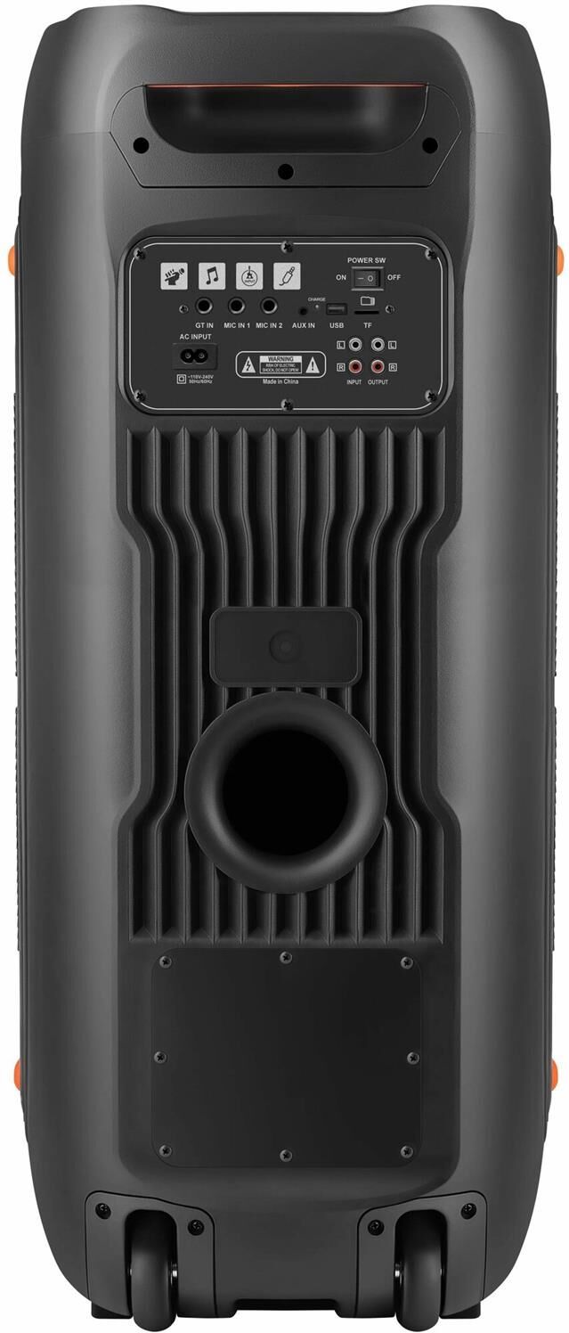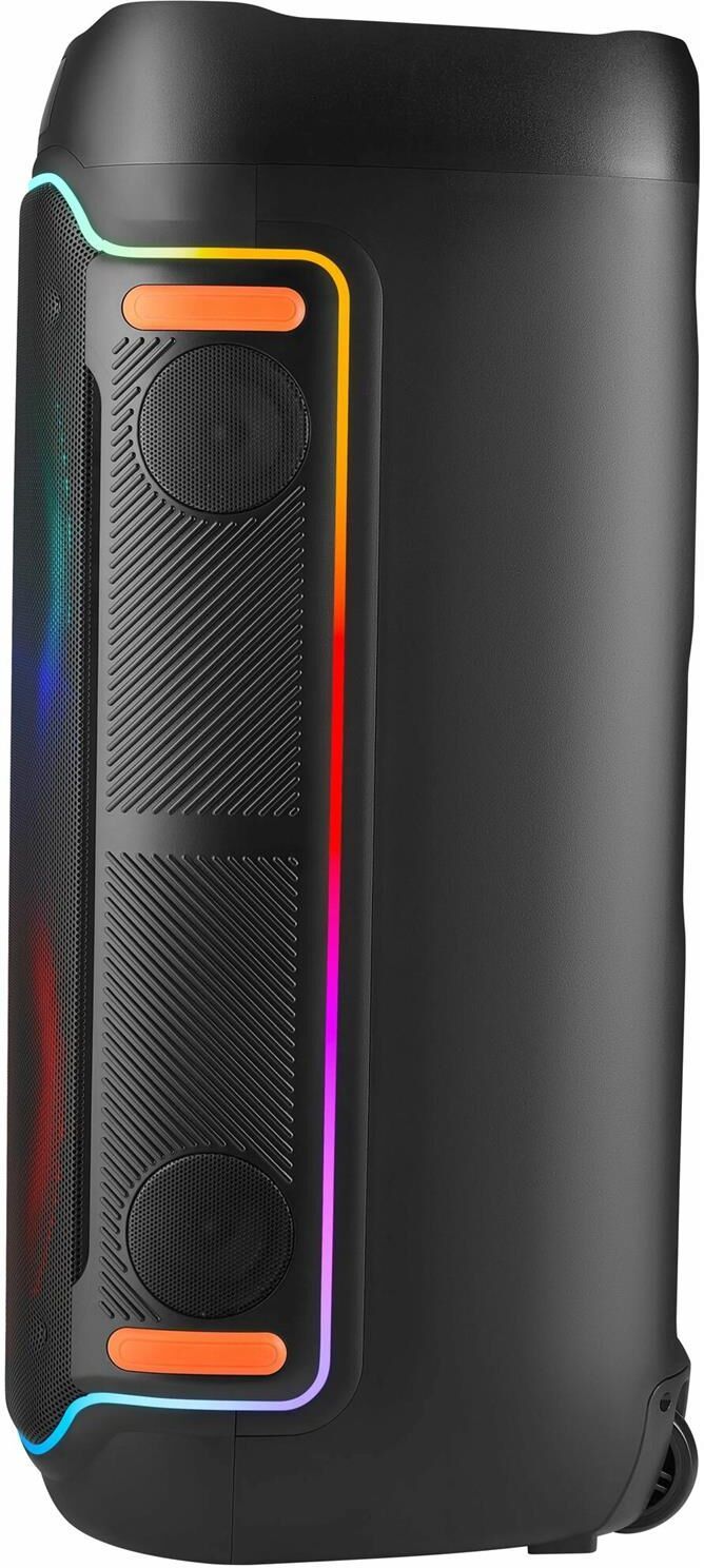 Комплектация: Акустическая система Беспроводной пульт ДУ Кабель питания Инструкция AUX-кабель , Размеры, мм: 361 x 870 x 346 , Защита от влаги: Нет , Максимальная мощность, Вт: 200 , FM-радио: Да , Наличие микрофона: Да , Стереозвук: Да , Слот для карты памяти: Да , Чувствительность, дБ: 70 , Возможность зарядки устройств: Нет , Декоративное покрытие корпуса: Пластик