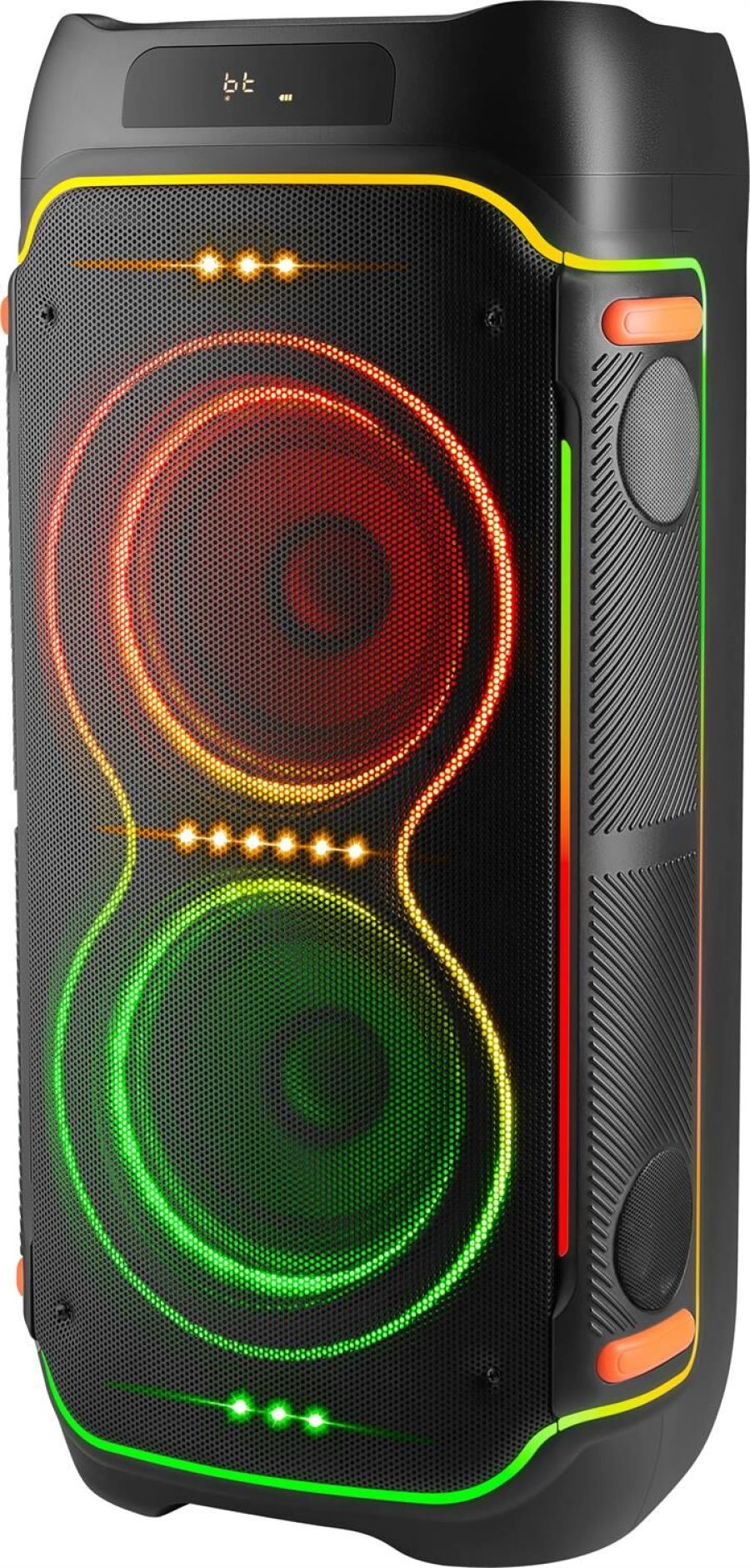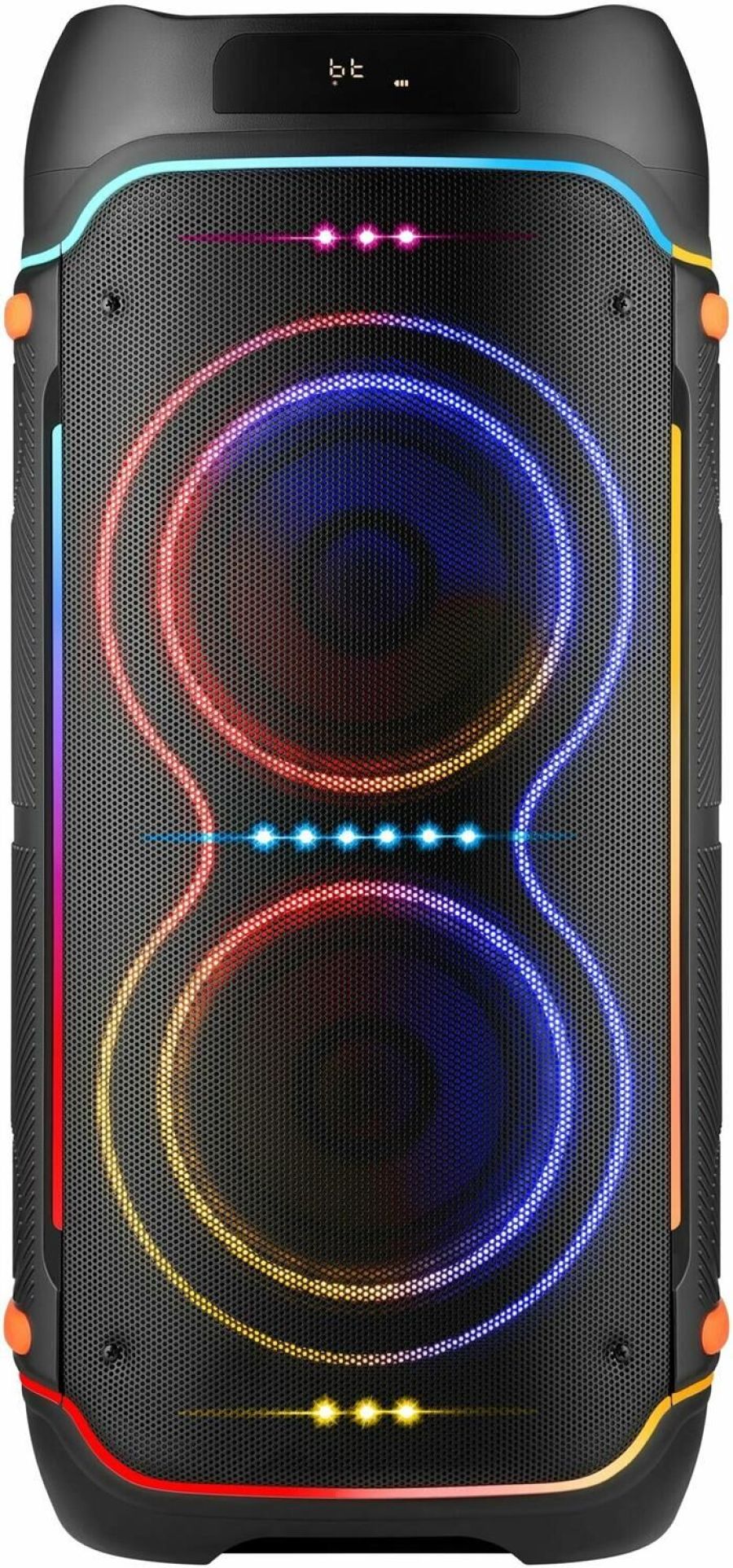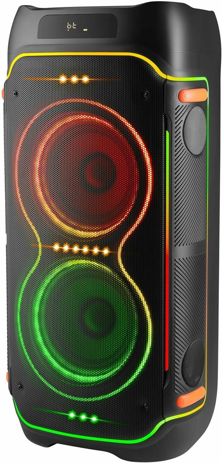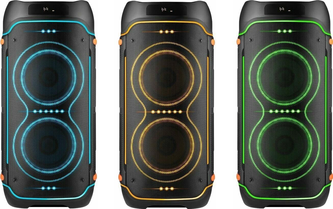 Мощная портативная акустическая Bluetooth система с LED подсветкой, дисплеем, встроенным MP3-плеером и FM-тюнером. Поддержка флеш накопителей и карт памяти microSD. Благодаря функции TrueWireless может объединяться в кластер с аналогичной системой и создавать эффект объемного звучания.
