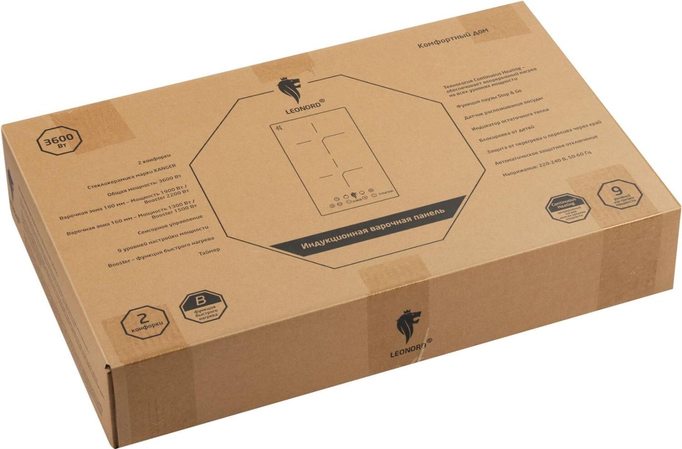 2 конфорки Стеклокерамика марки KANGER Общая мощность: 3600 Вт Варочная зона 180 мм - Мощность 1900 Вт / Booster 2200 Вт Варочная зона 160 мм - Мощность 1300 Вт / Booster 1500 Вт Сенсорное управление 9 уровней настройки мощности Booster - функция быстрого нагрева Таймер Технология Continuous Heating - обеспечивает непрерывный нагрев на всех уровнях мощности Функция паузы Stop & Go Датчик распознавания посуды Индикатор остаточного тепла Блокировка от детей Защита от перегрева и перелива через край Автоматическое защитное отключение Размер изделия: 288*520*56 мм Напряжение: 220-240 В, 50-60 Гц Гарантия 2 года