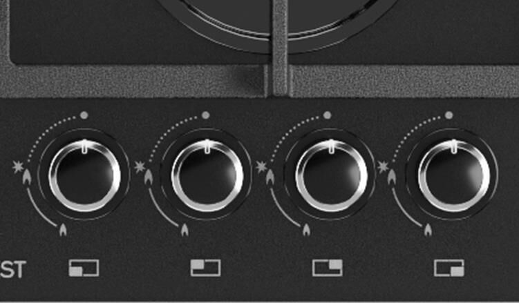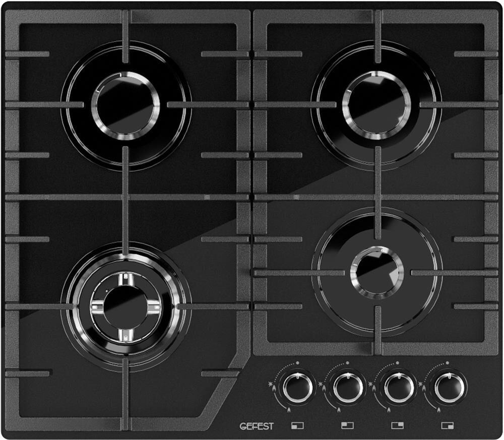 Размеры монтажного проема, ШхГ, см 55,4 х 48,6. Ширина, см 60, Глубина, см 52,5, Высота, см 10. Тип подключения Газовый. Количество зон приготовления 4. Цвет модели Черный. Материал варочной поверхности Стекло. Материал решеток варочной поверхности Чугун. Двухзонная горелка варочной поверхности, Газ-контроль горелок стола, Электророзжиг горелок стола встроен в ручки, "Фиксированное положение ""малое пламя"",
